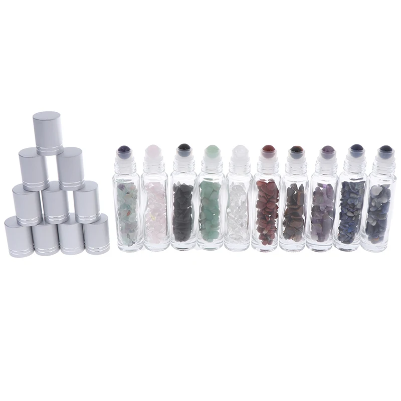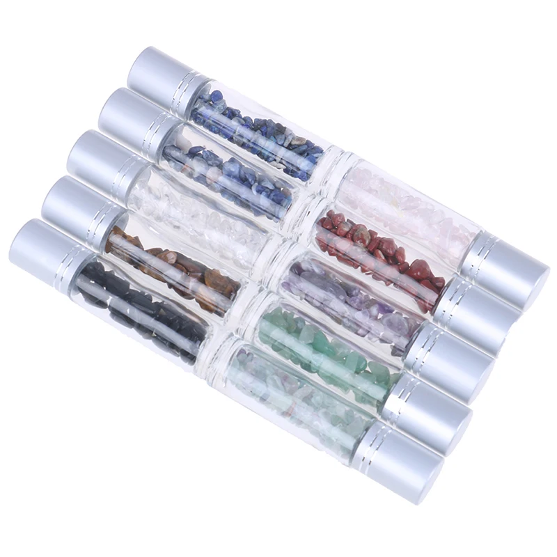 Каждый драгоценный камень роликовые шарики соответствует соответствующие мини кристалл каменные чипсы, которые в бутылках. Эти хрустальные чипсы стерилизуются в кипящей воде, а затем высушиваются ветром. Обратите внимание, что натуральные камни имеют разницу в цвете, их нельзя избежать.