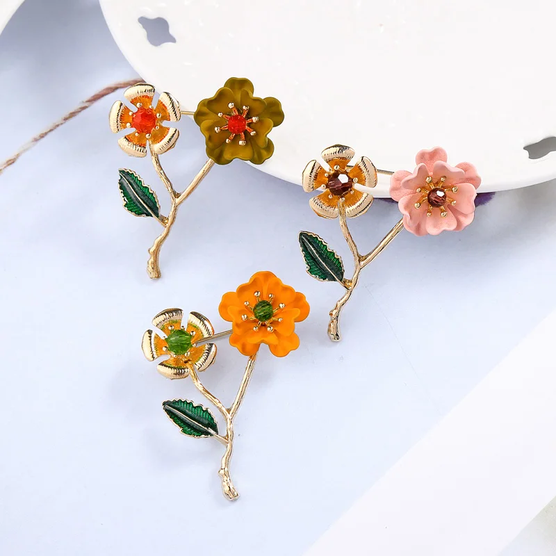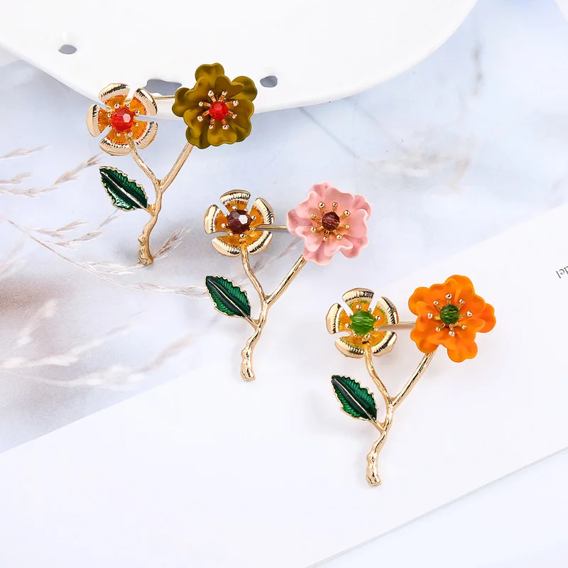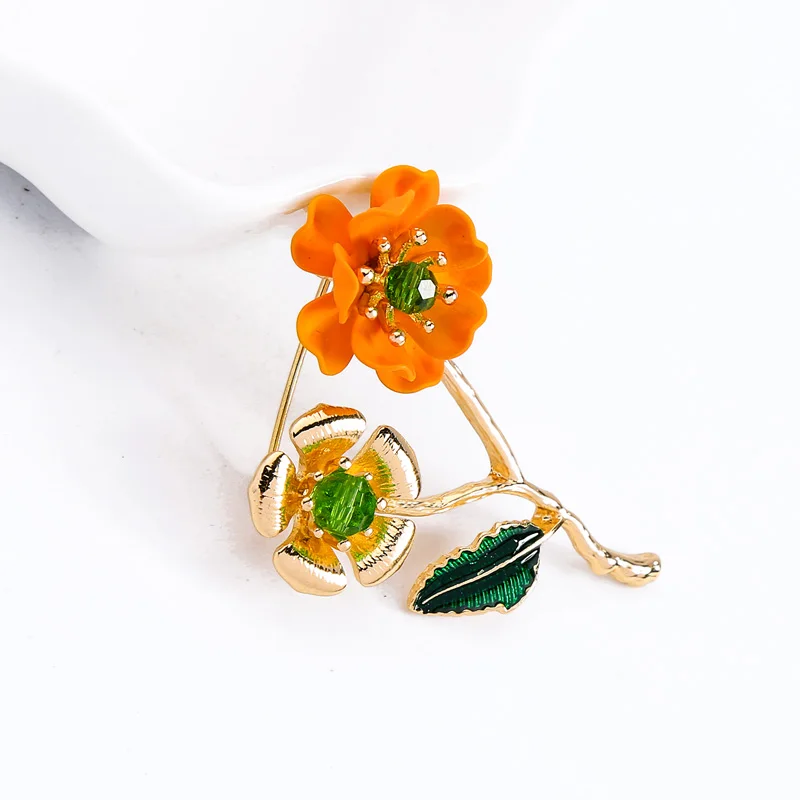 BALANBIU Уникальные красные и розовые и оранжевые эмалированные красные стеклянные двойные цветы Брошь для женщин Подарки Золотой Цвет 2019 Новая мода ювелирные изделия оптом