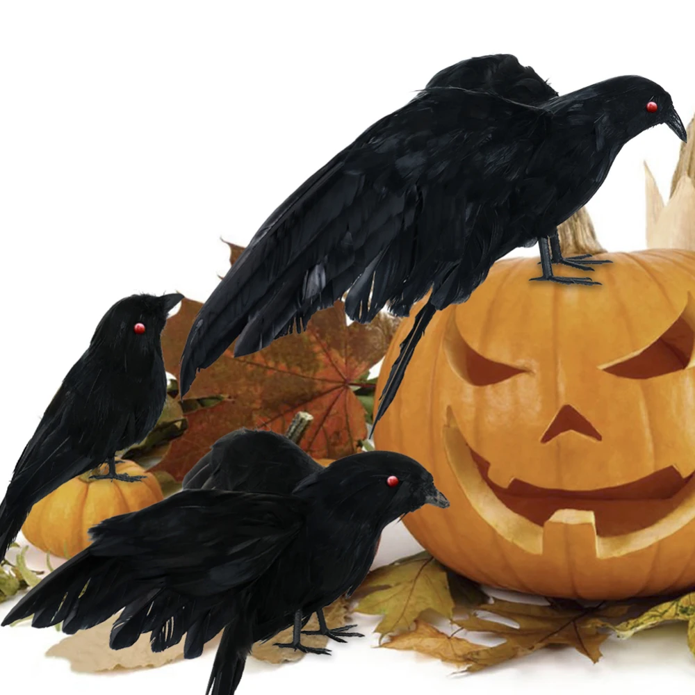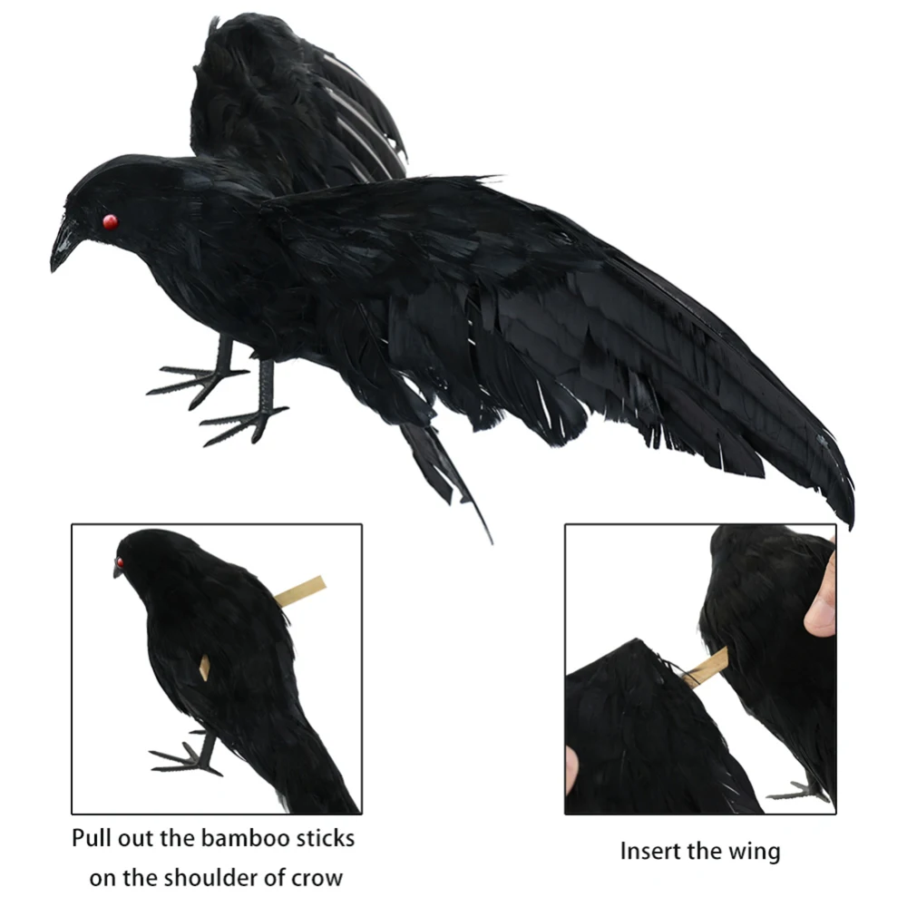 -Эти искусственные птички поставляются с 3 реквизитами в разных позах-1 Летающая большая ворона, 1 Ворона среднего размера, расползающая крыло, и 1 маленькая ворона, стоящая и поднимающая голову.