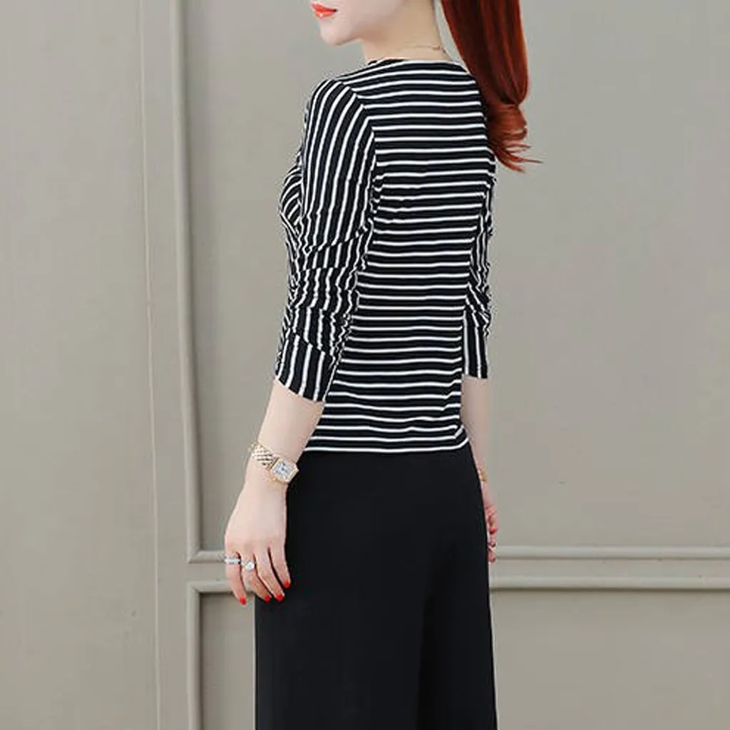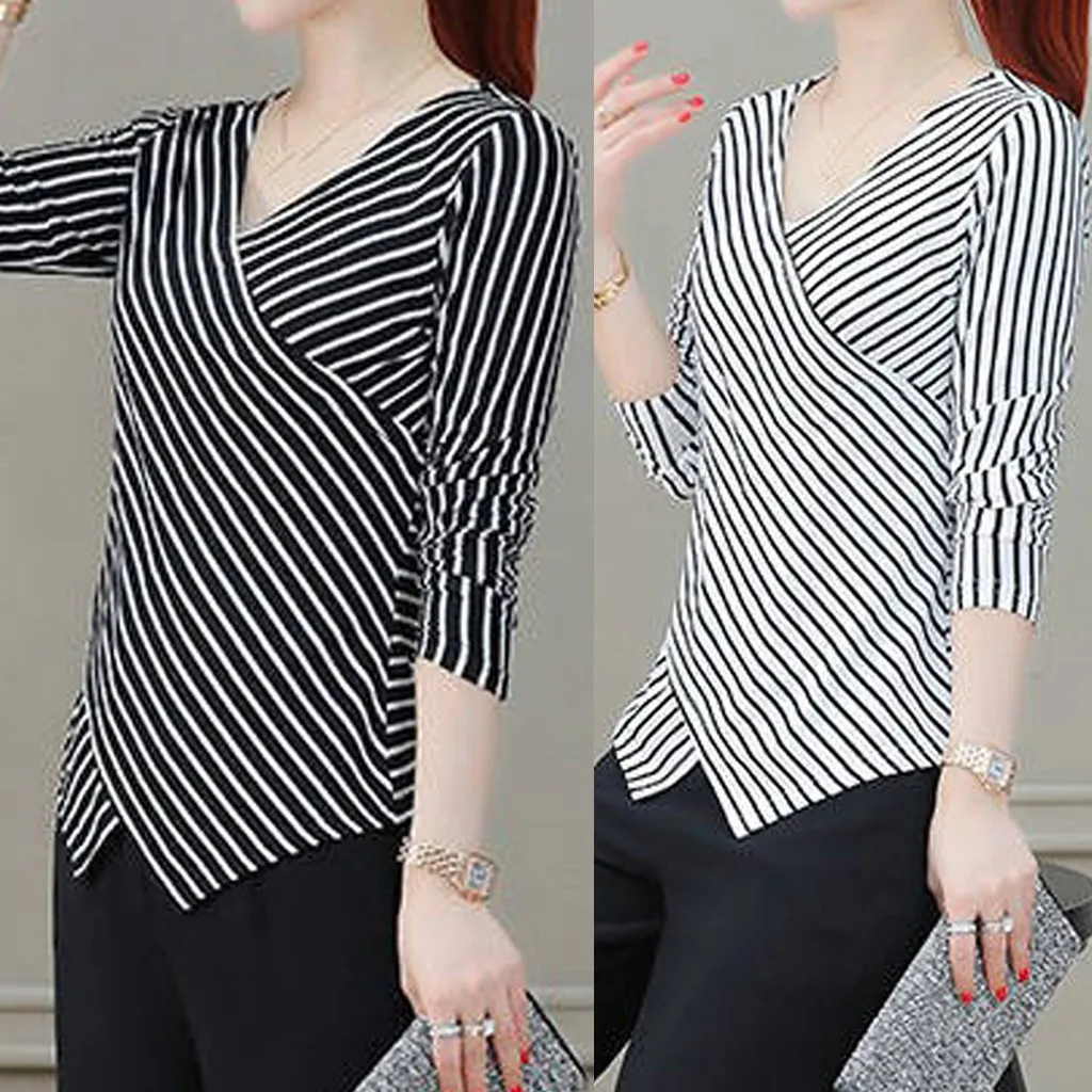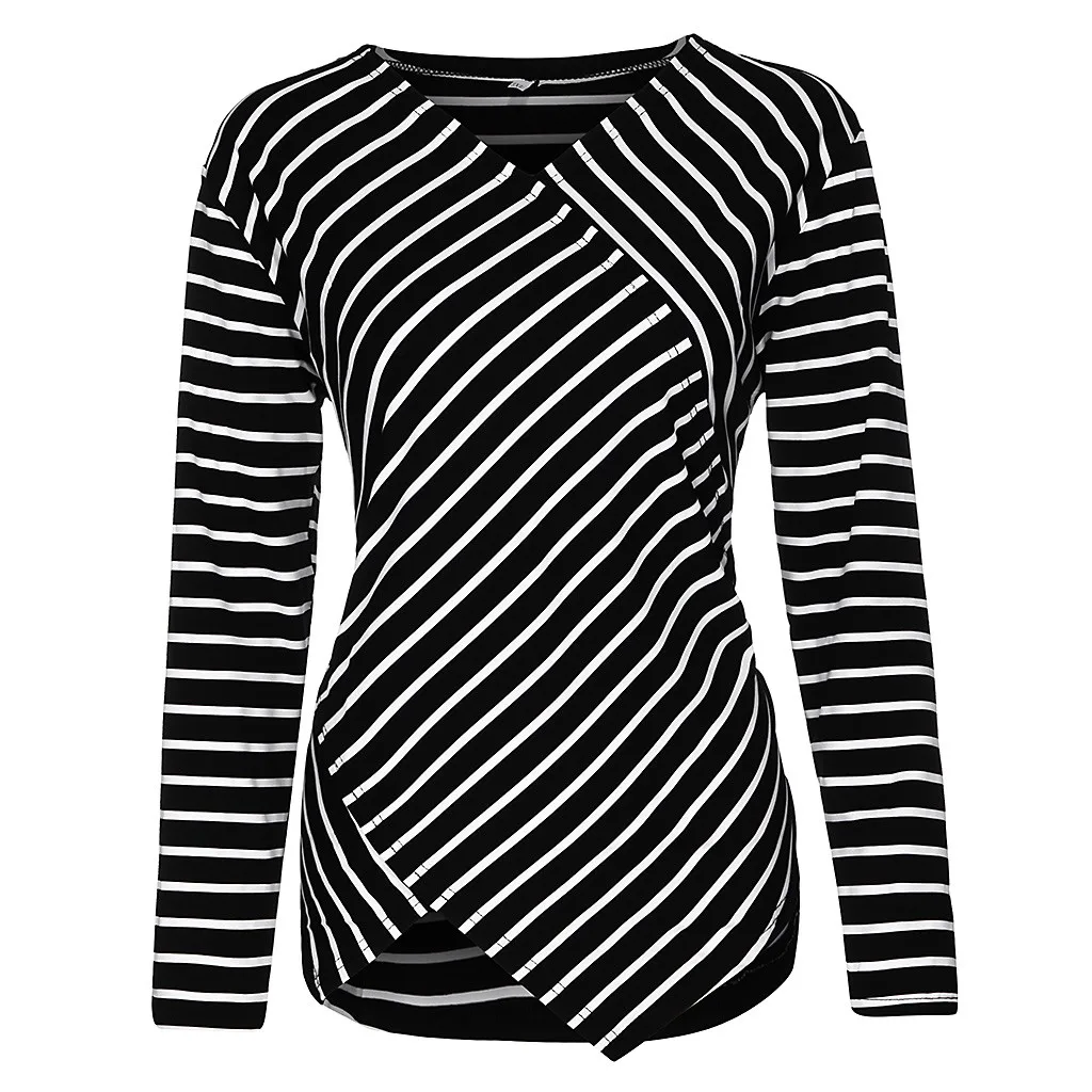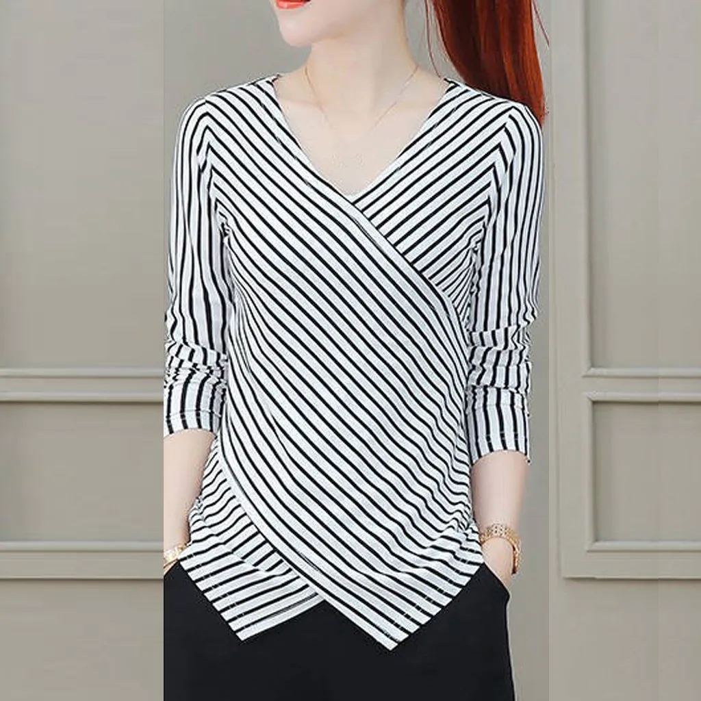 Модная женская блузка с длинными рукавами, рубашка с v-образным вырезом в полоску