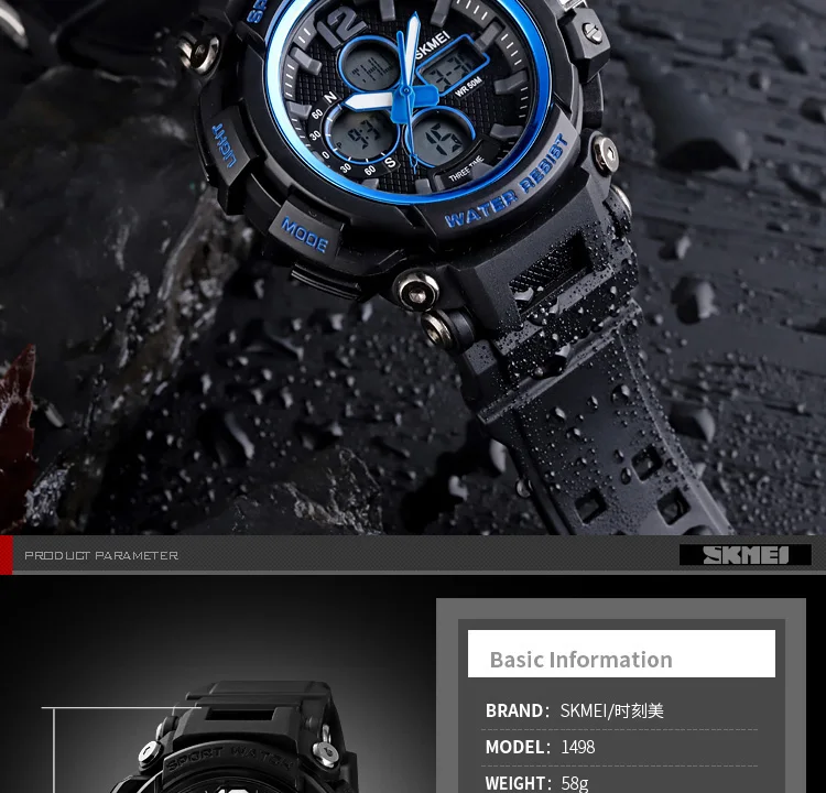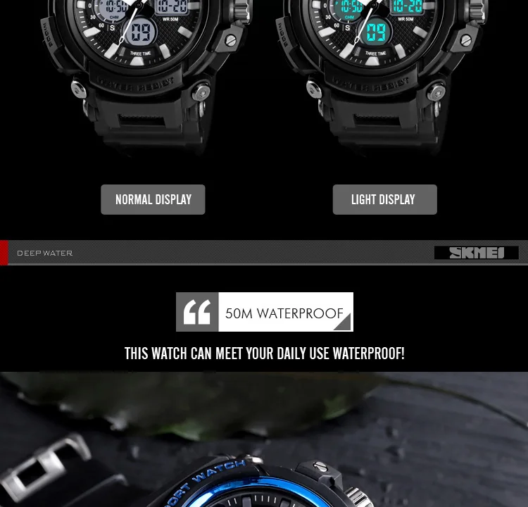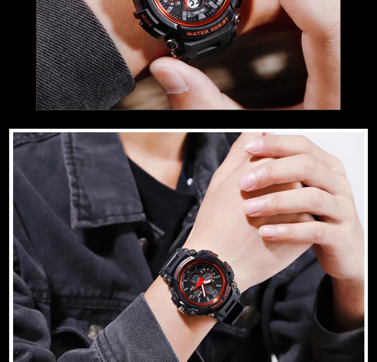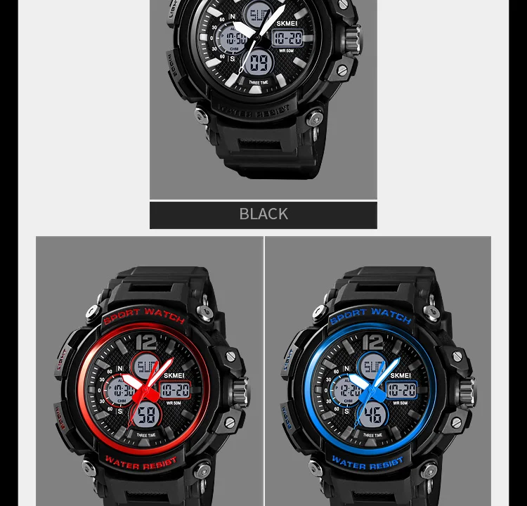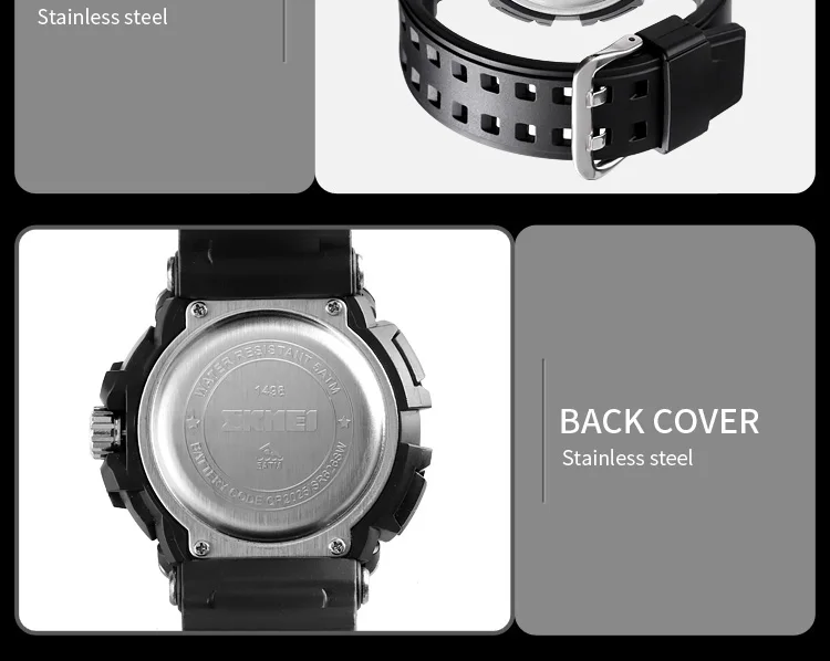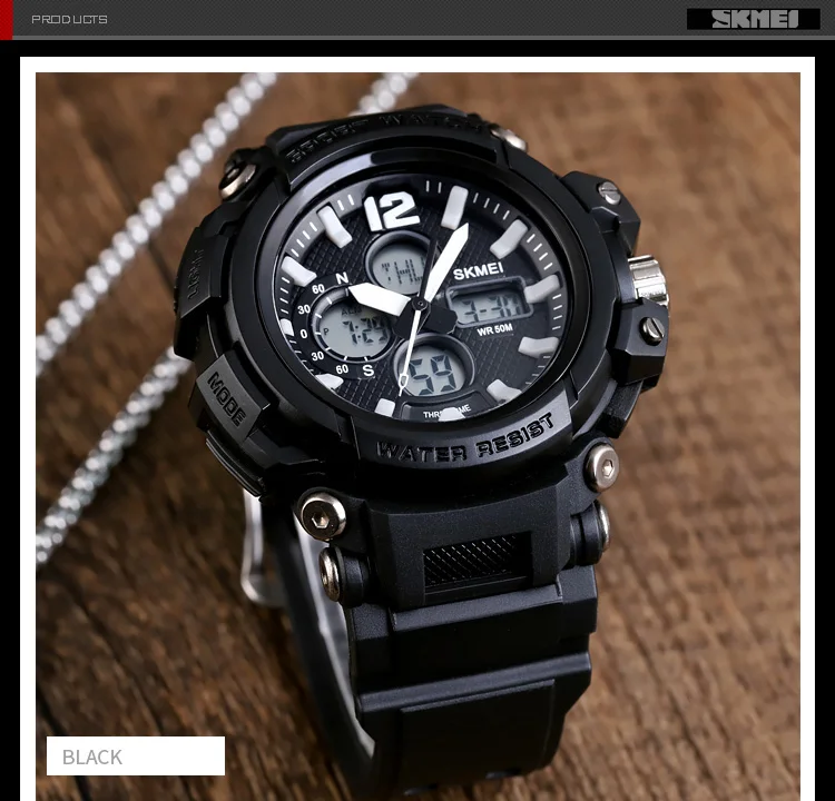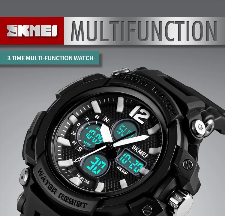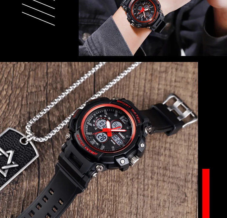 SKMEI Мужские Цифровые часы с двойным дисплеем кварцевые часы Chrono спортивные часы 5 бар водонепроницаемые мужские наручные часы Relogio Masculino 1498