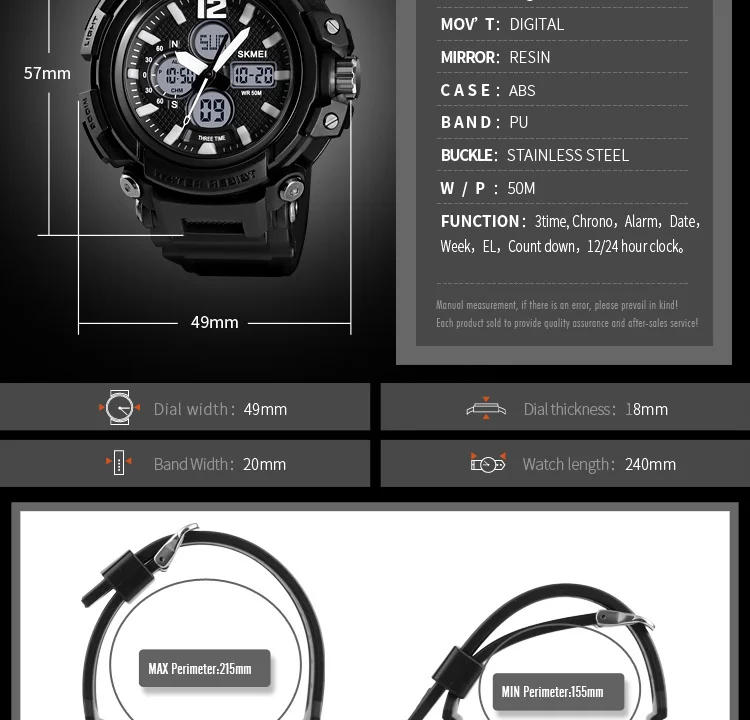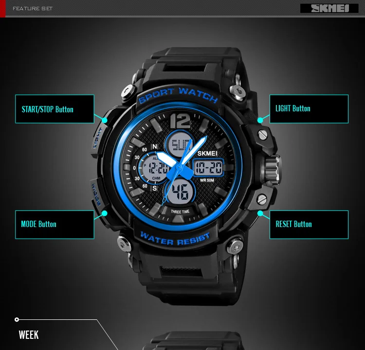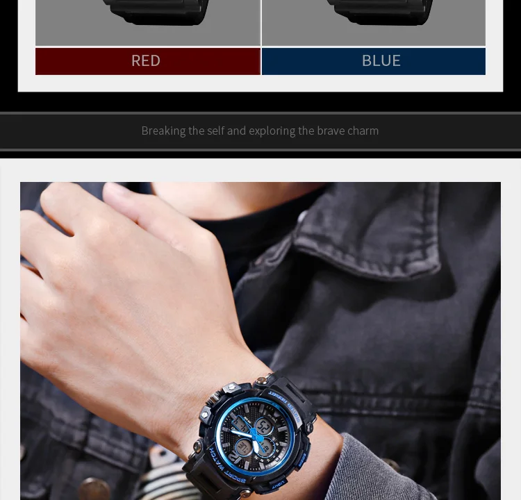 • Пол: Для мужчин • Часовой механизм: цифровой часовой механизм • Цвета: черный, синий, красный • Материал корпуса: Пластик • Группа Материал: искусственная кожа • Тип застежки: Пряжка • Часы циферблата: круглые • Диаметр циферблата: 49 мм • Толщина корпуса: 9 мм • Ширина ремешка: 22 мм • Длина браслета: 220 мм • Вес: около 0,15 кг • Глубина водонепроницаемости: 5 бар • Стиль: спорт, бег, Велоспорт, альпинизм • Функции: водонепроницаемые, хронограф, будильник, • Особенности: большой циферблат, водонепроницаемый, обратный отсчет, задний свет, 12/24 часов • Содержимое упаковки: 1 × спортивные часы (без коробки)