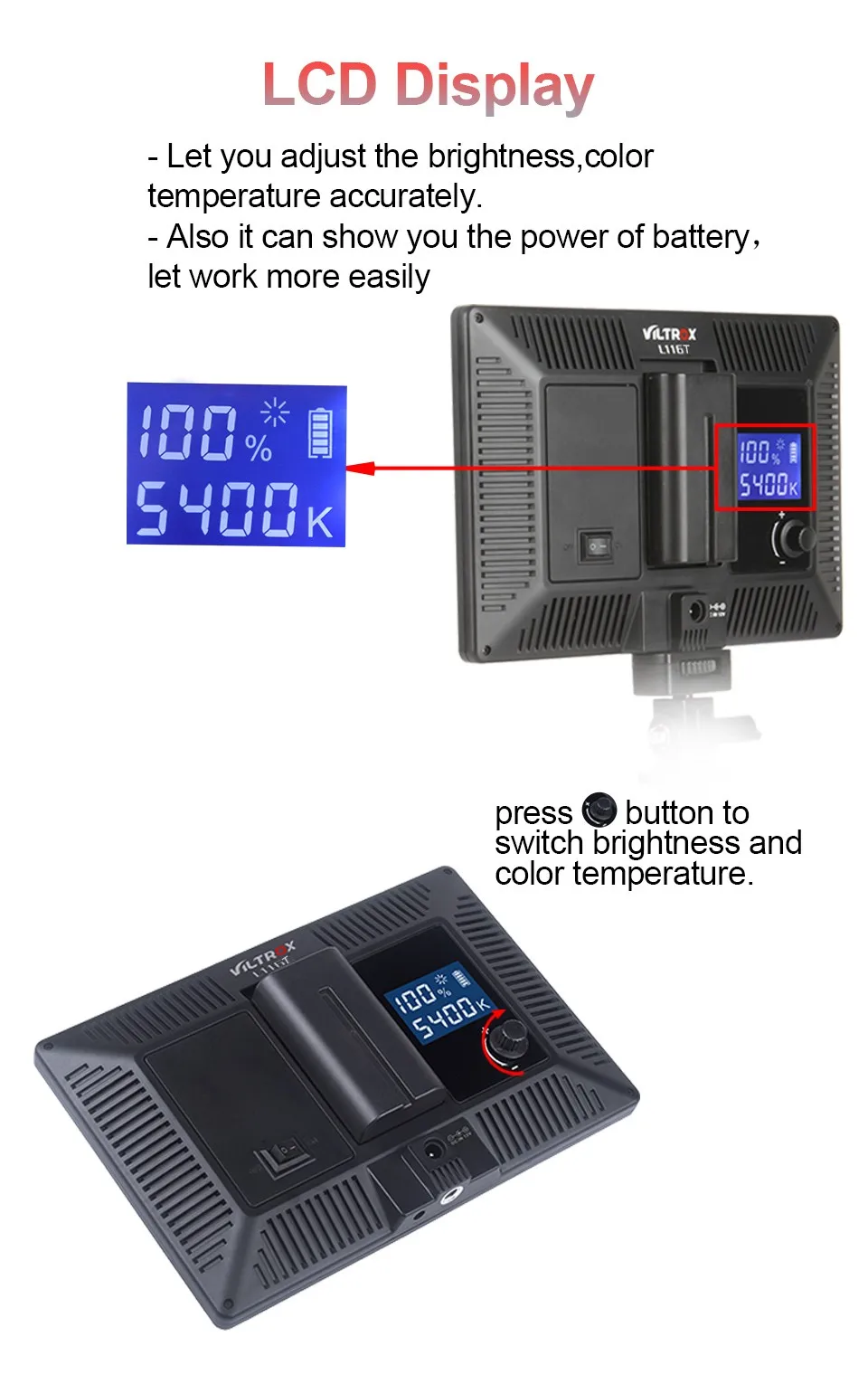 Viltrox L116T Камера светодиодный видео светильник ЖК-дисплей Дисплей Bi-Цвет и
