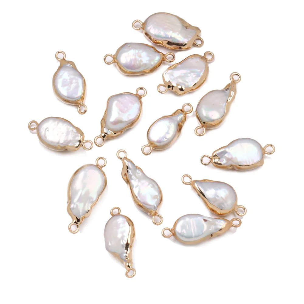 Название: кулон из натурального пресноводного жемчуга, нерегулярный Соединитель с двумя отверстиями, Подвески для изготовления ювелирных изделий, DIY браслет, ожерелья, аксессуары, Размер 11x16-12x18мм