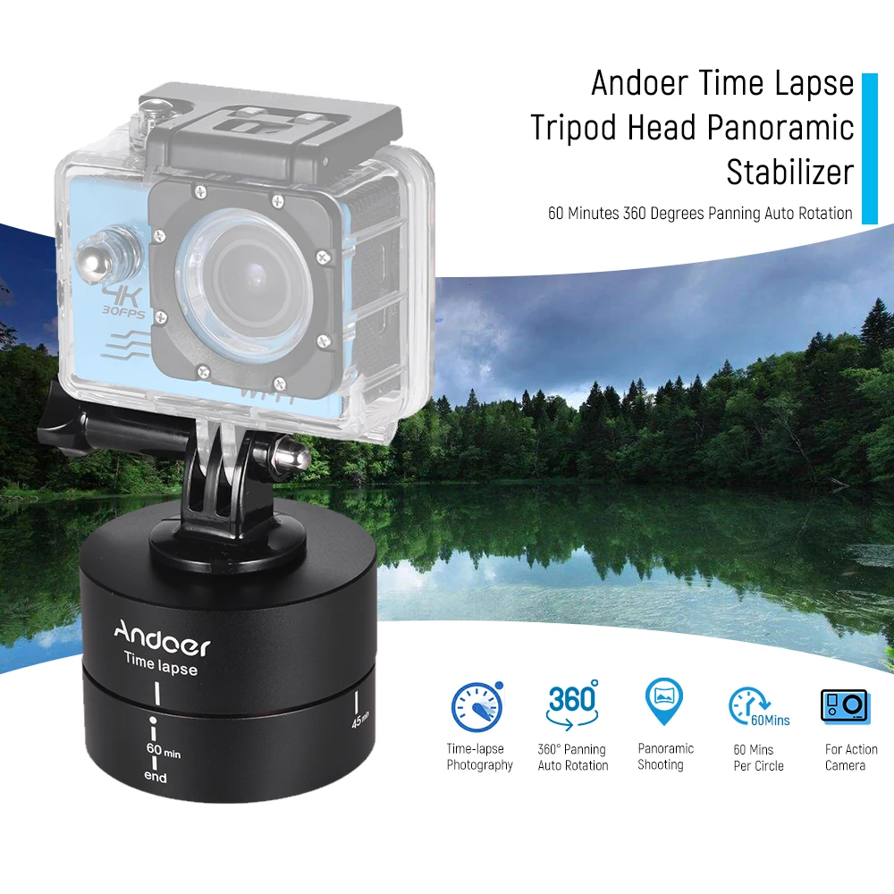 Andoer 60 минут 360 градусов панорамирование Авто вращение промежуток времени головка штатива панорамный стабилизатор для легких dslr-смартфонов