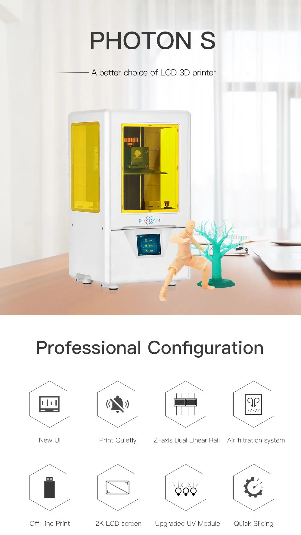2K LCD (2560*1440) предлагает разрешение XY 47 микрон. Он печатает намного лучше FDM принтеров.