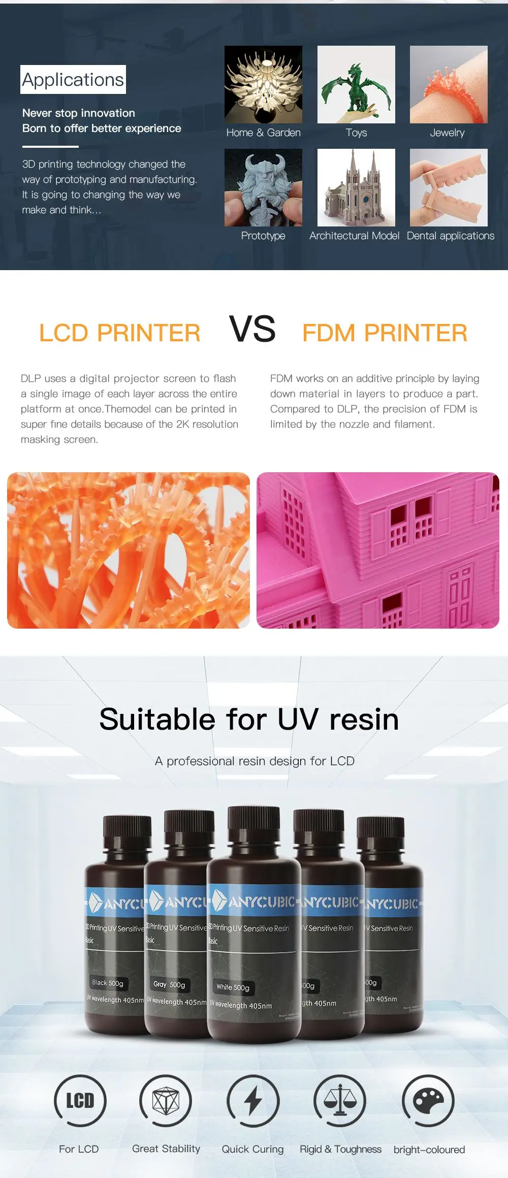 Никаких ограничений на смолы. Смолы, которые могут быть вылечены светильник с длиной волны 405 нм поддерживаются. (* У вас будут лучшие результаты с выделенной Anycubic смоляной)