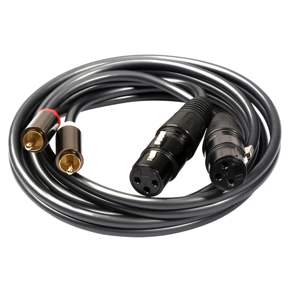 1, двойной XLR для женщин 2RCA мужской аудио кабель. 2, длина: 1,5 м 5 футов (аутентичная длина) 3, черный кабель соединителя, Позолоченный разъем RCA 4, изысканные черные металлические заглушки гораздо прочнее и устойчивы к окислению 5, применение: преобразует двойной XLR Female в 2 RCA Male, например, подключение диджея контроллеров к усилителям, Интегрирование домашнего кинотеатра и аудио-передачи pro. Что в коробке? 1 шт. 1,5 м двойной XLR для женщин 2RCA мужской кабель