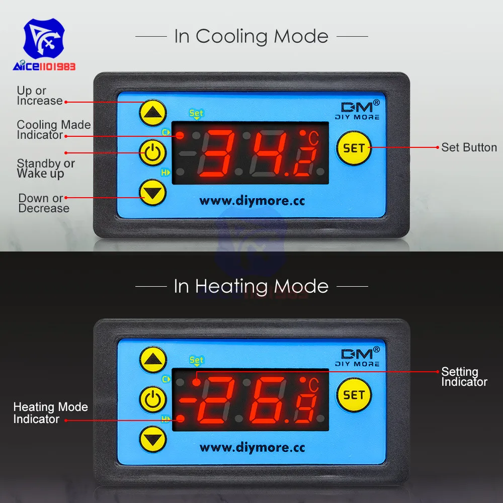 В соответствии с контроллер нормальное рабочее состояние, нажмите кнопку "установить" ключ в течение 3 секунд изменение языка или больше, чтобы войти параметр изменить режим, а "набор" индикатор светильник, экран отображает первый код меню «F1». Нажмите кнопку «▲», чтобы избежать помех, провод датчика вниз-свинца и питания должен быть сохранен на расстоянии или "▼" ключ для страницы вверх и вниз пункт меню, чтобы найти соответствующий код, нажмите кнопку «SET», чтобы отобразить Значение набора параметров текущего меню. Нажмите и удерживайте кнопку «SET», нажмите кнопку «▲» или «▼» снова, чтобы отрегулировать значение настройки параметров текущего пункта меню. Нажмите и удерживайте одновременно «SET» и «▲» или «▼», чтобы выбрать и быстро отрегулировать значение параметра текущего меню. После завершения настройки, нажмите и отпустите кнопку «Вкл/Выкл» мгновенно, чтобы сохранить Измененное значение параметра и вернуться, чтобы отобразить нормальное значение температуры. Если ключ не будет работать в течение 30 секунд, система не сохранит модифицированный параметр, экран снова отобразит нормальную температуру. Экранный дисплей «Er», если во время сохранения параметров появляется ошибка, и вернуться к нормальному рабочему статусу за 3 секунды.