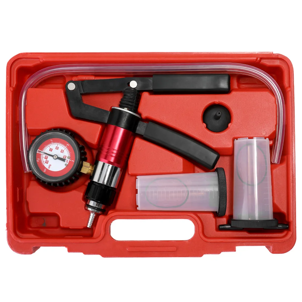 Набор ручных тестеров на тормоз и муфту, вакуумный насос для автомобиля, мотоцикла и т. Д. Легко тормозит и проверяет автомобильные вакуумные системы самостоятельно. Подходит для всех марок и моделей автомобилей. Полный набор вакуумных насосов, включает резервуар и переходник для сосков для тормозов и кровотечения топливной линии. Насос управляемый рукой тянет жидкость через ниппель, устраняя нужно использовать тормозной рычаг или для езды на велосипеде. Ручной насос с манометром позволяет тестирование многих вакуумных систем, например: топливных насосов, углеводов и т. д.