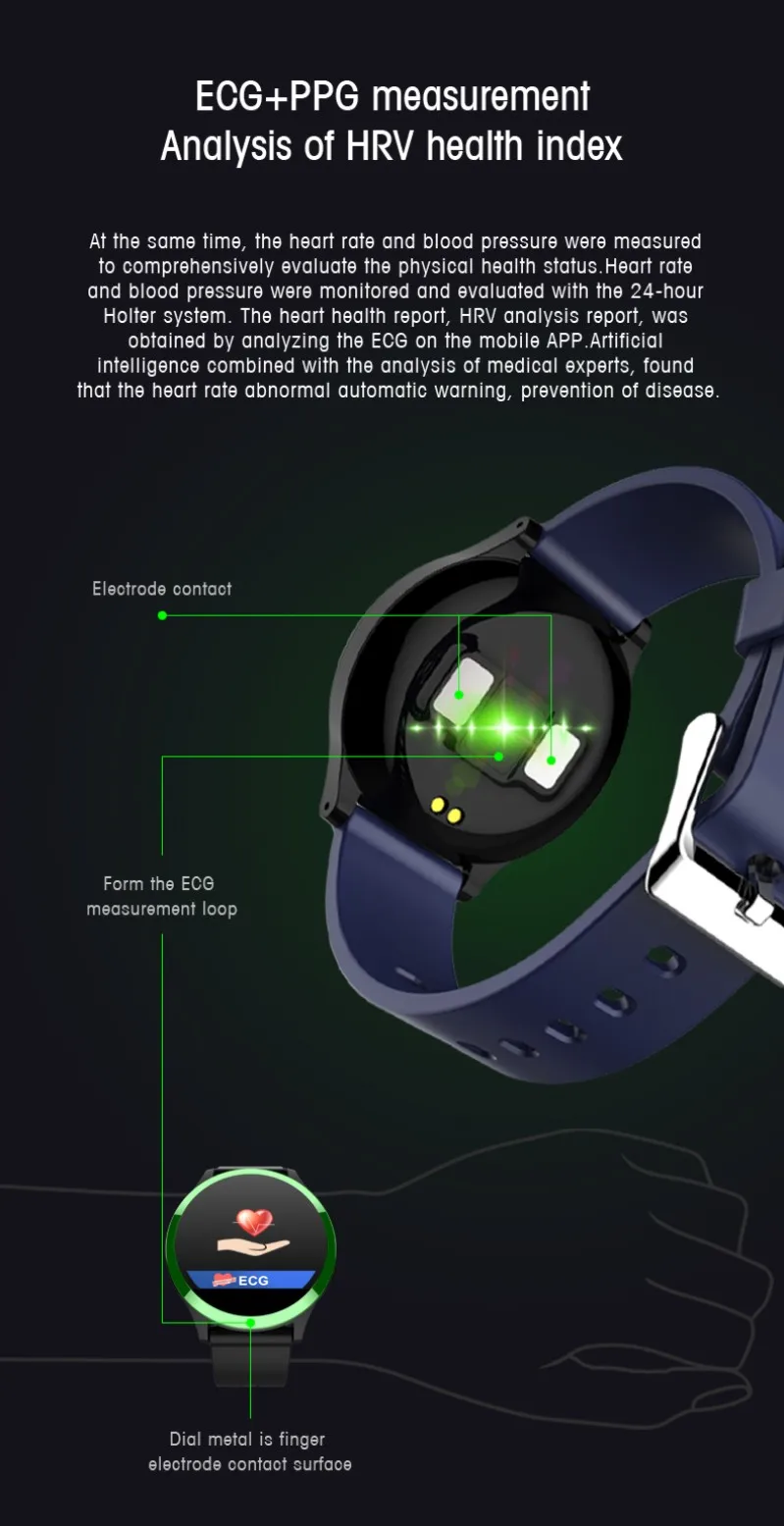 Описание продукта: 1. Обнаружение сердечного ритма, ЭКГ, тест на кровяное давление (мониторинг сердечного ритма) 2. ECG + PPG a измерение здоровья, обмен ЭКГ, индекс здоровья HRV 3. Отображение времени/часов, шаг, калории, расстояние, время сна, камера, температура окружающей среды, дисплей переключателя 4. Стандартные функции упражнений (шагомер, расход калорий, расчет расстояния); Мульти-спортивный режим (альпинизм, ходьба, Баскетбол, бег, настольный теннис, Велоспорт, плавание, бадминтон, футбол) 5. Мониторинг сна (время сна, качество сна, задержка) 6. Напоминания о звонках, SMS напоминание, qq напоминание, микро напоминание, Skype, facebook, whatsApp напоминание. 7. Найдите телефон и найдите браслет 8. Будильник/лекарство/встреча/сидячая/напоминание о напитке 9. Камера дистанционного управления (встряхните, чтобы сделать фотографии) 10. Друзья и родственники движения, данные измерений, взаимное исследование Параметры Главный чип: NRF52832 RAM: 64K(Flash 512K) Чип ECG: Texas Instruments TI Чип PPG: ч 3300 Двигатель: встроенный, вибрационное напоминание Версия Bluetooth: 4,0 BLE Датчик: g-сенсор Материал: нержавеющая сталь 316L, поликарбонат, термопластичный эластомер Водонепроницаемый уровень: IP67 Батарея: 180 мАч литиевая батарея Время зарядки: около 1,5 часов Срок службы батареи: около 5-7 дней Поддержка системы: версия Android 4,4 и выше; Версия iOS 9,0 и выше Посылка 1 x смарт-браслет 1 x кабель для зарядки Руководство пользователя (1 шт.)