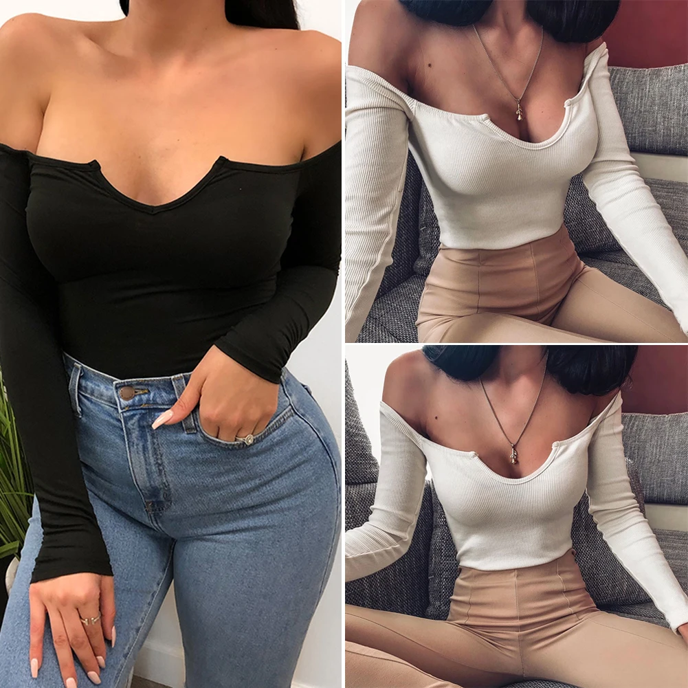 Женский короткий топ с открытыми плечами, футболки с длинным рукавом, Короткие футболки для женщин, одежда, модная черная футболка, топы, футболки в Корейском стиле