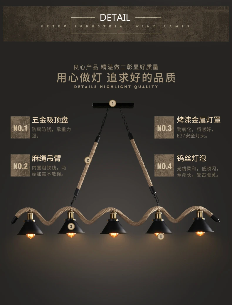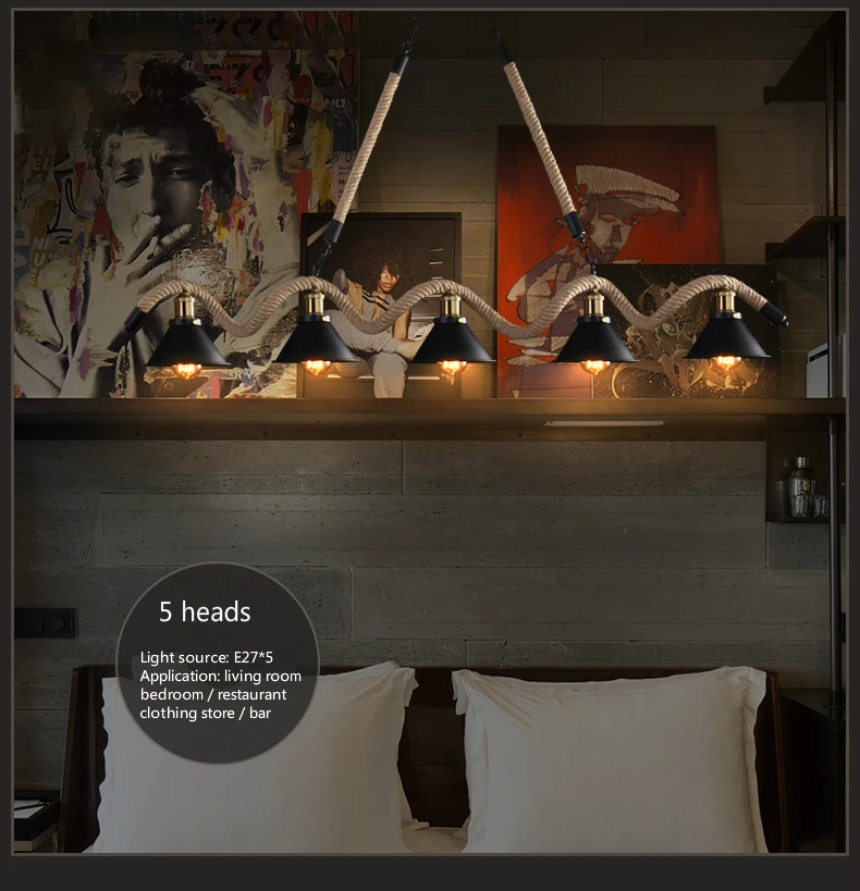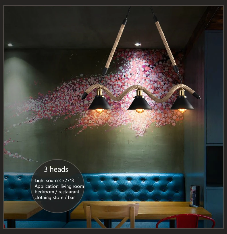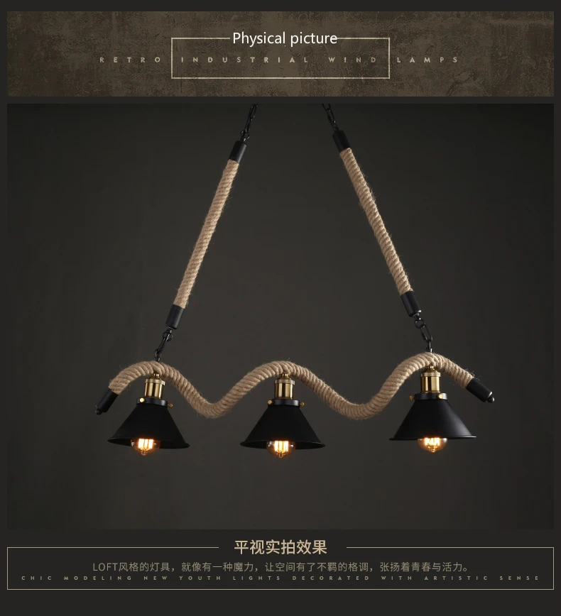 Лофт промышленная ветровая люстра бар американский стиль магазин одежды для отеля люстра кибер кафе бильярдная комната пеньковая веревка люстра