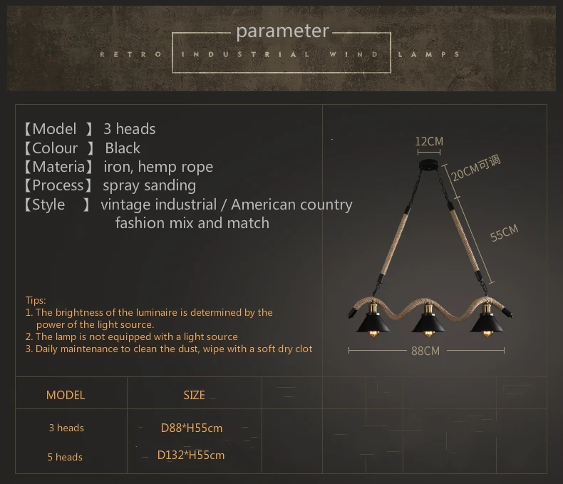 Параметры продукта 1. Бренд: Molden 2. Номер товара 8017 3. Стиль товара: стиль Ретро/американский кантри/модный смешанный и подходящий 4. Материал: железо + пеньковая веревка 5. Размер: 3 головки: D88 * H55 см 5 головок: D132 * H55CM 6. Светильник источник: E27 7. Цветовая гамма: теплый белый, холодный белый 8. Напряжение: AC90-260V 9. Доставка: 6-8 дней 10. Цвет корпуса: белый/серый 11. Применение: Офис/кабинет/спальня/ресторан/бар и т. Д.