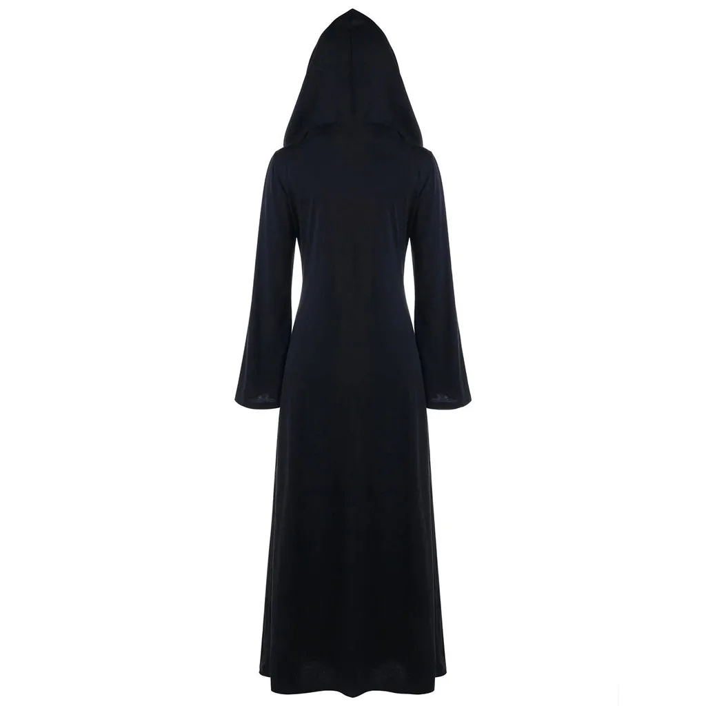 Женское платье-макси с капюшоном на Хэллоуин размера плюс, на шнуровке, в стиле пэчворк, с длинным рукавом