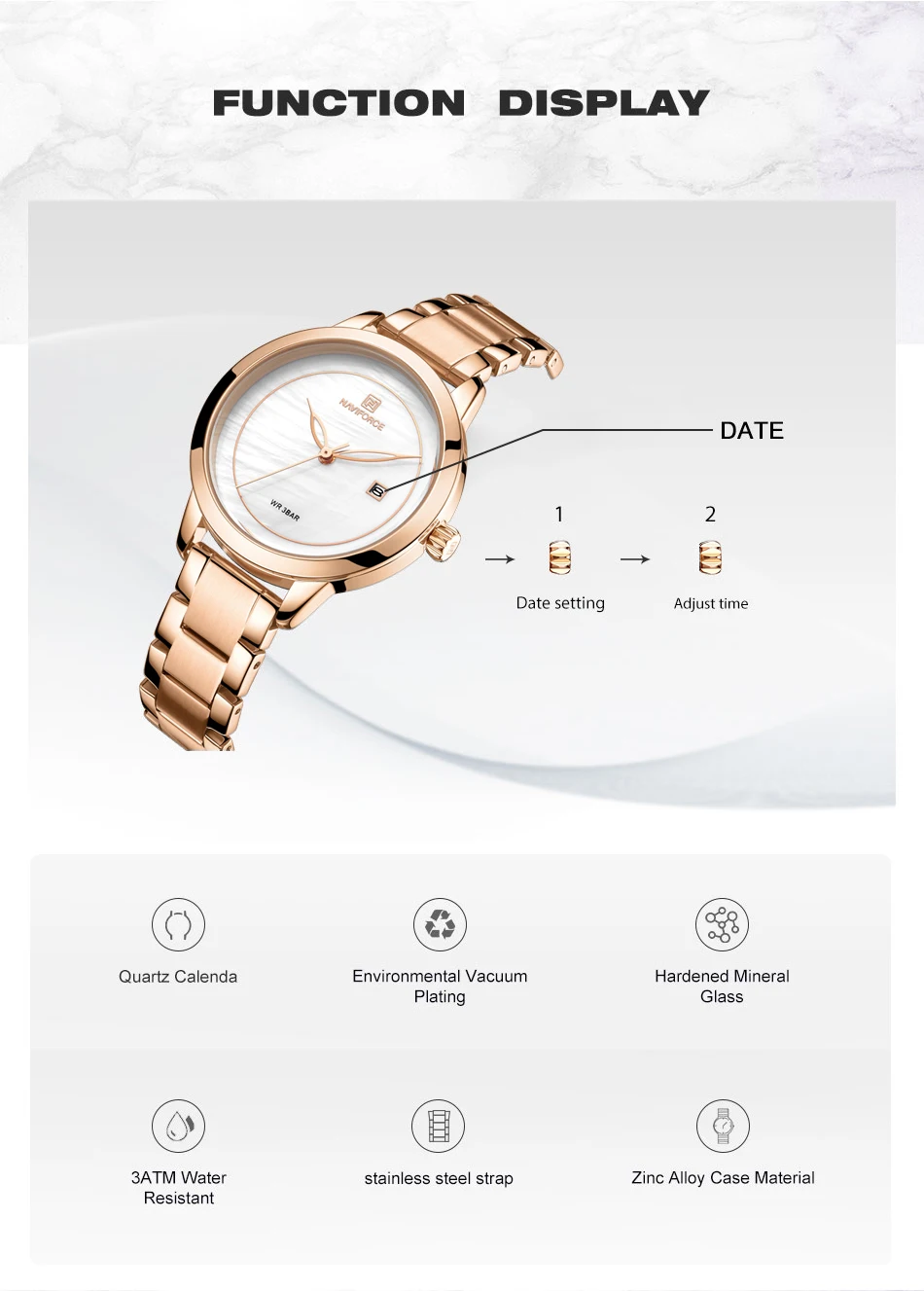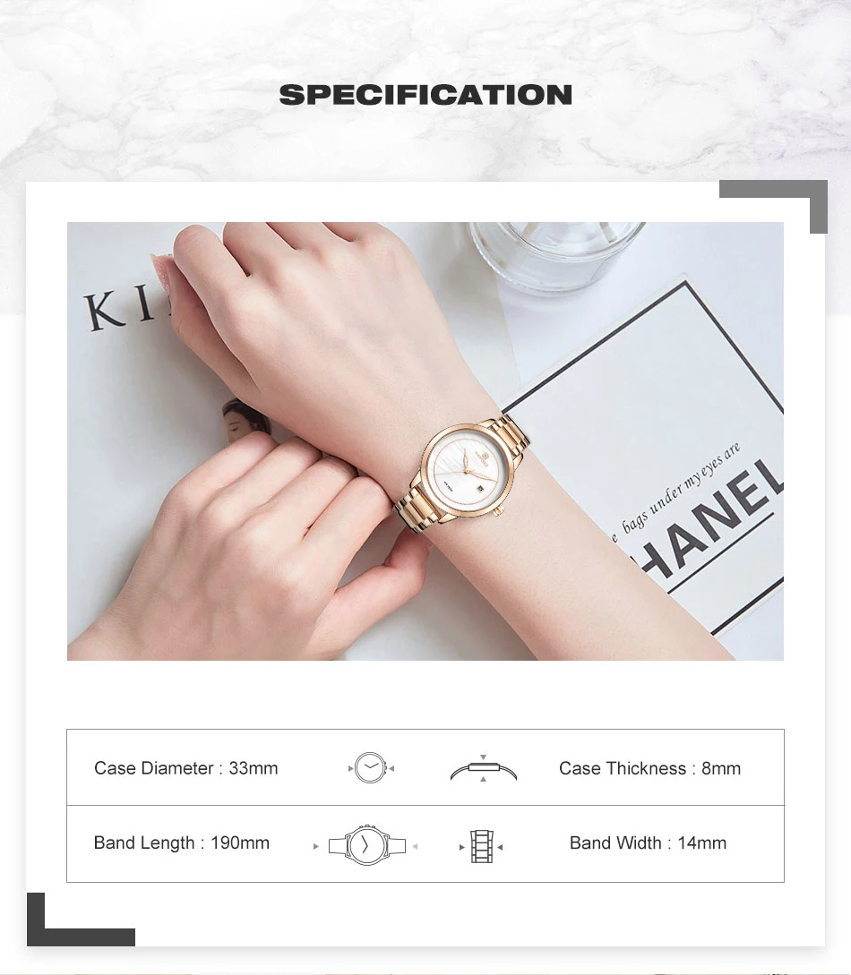 Описание продукта: 100% новые и высококачественные Роскошные дизайнерские женские наручные часы Защита от влаги Японский кварцевый механизм Технические характеристики Материал корпуса: сплав Чехол Диаметр: 33 мм Чехол Толщина: 8 мм Длина ремешка (включая чехол): 190 мм Ширина ремешка: 14 мм Что входит в комплект 100% новый бренд NAVIFORCE 1 x Роскошные дизайнерские женские наручные часы NAVIFORCE