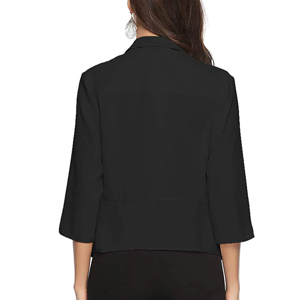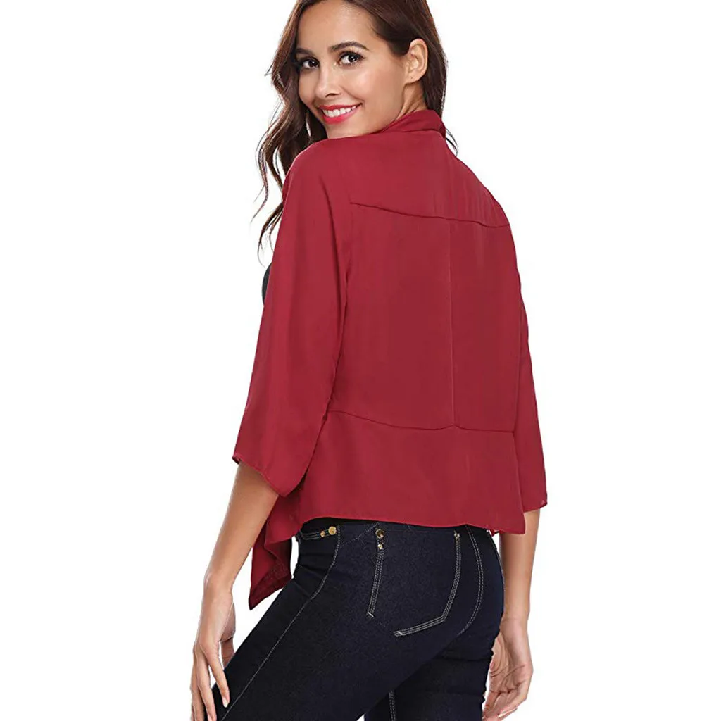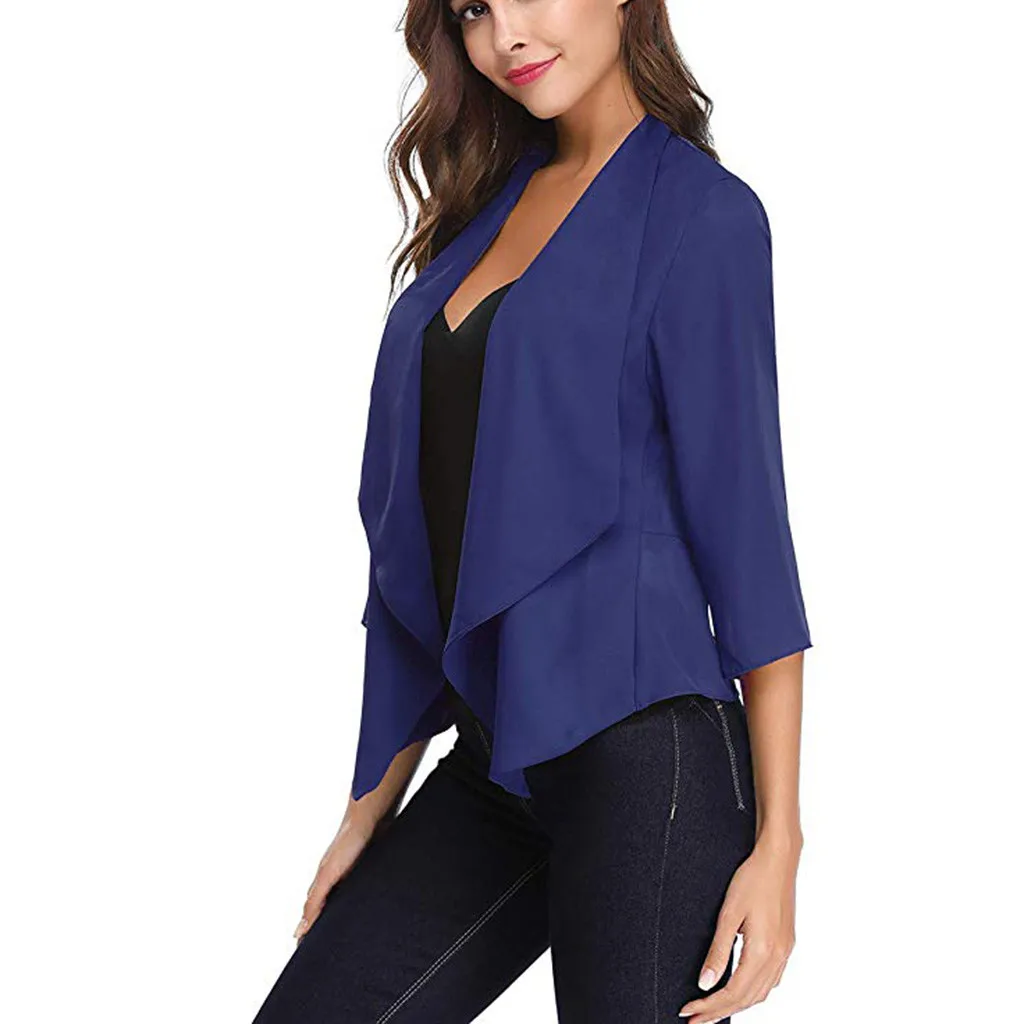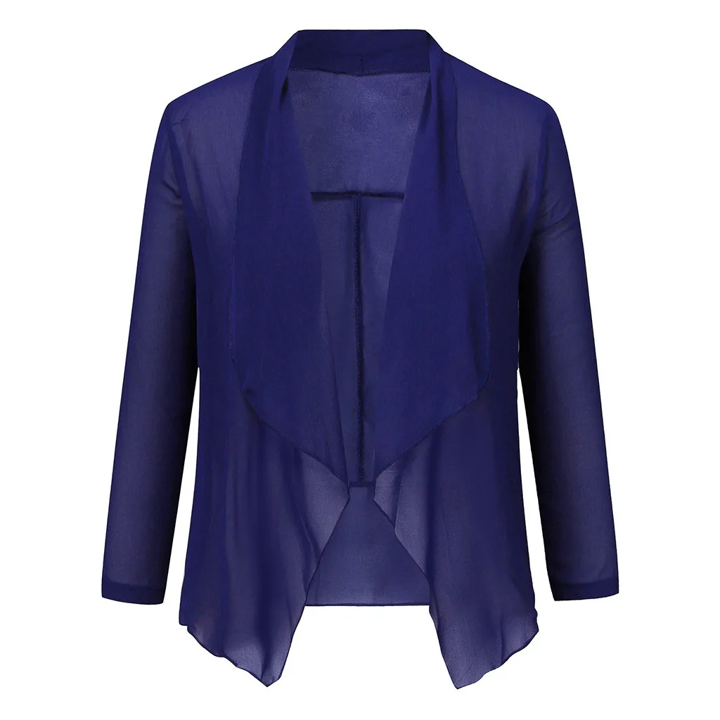 Женская одежда Открытый передний светильник, кардиган с рукавом 3/4, тонкий шифоновый пиджак