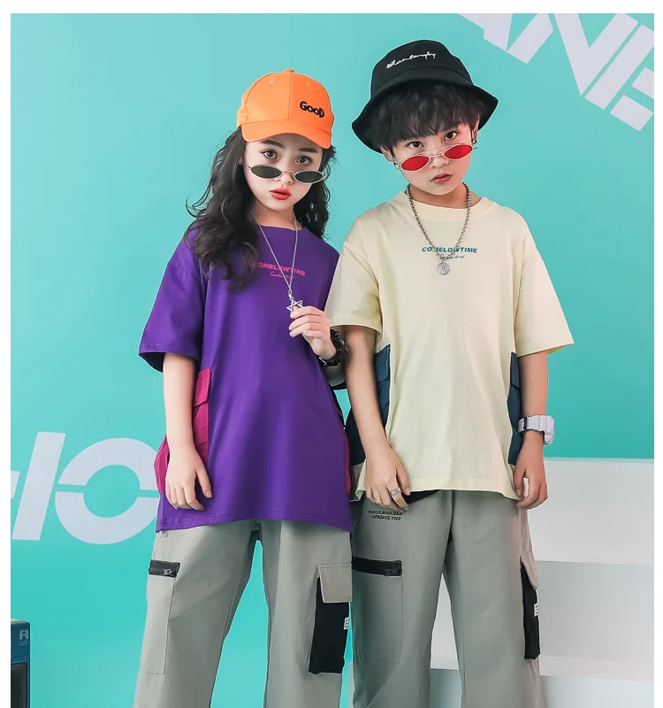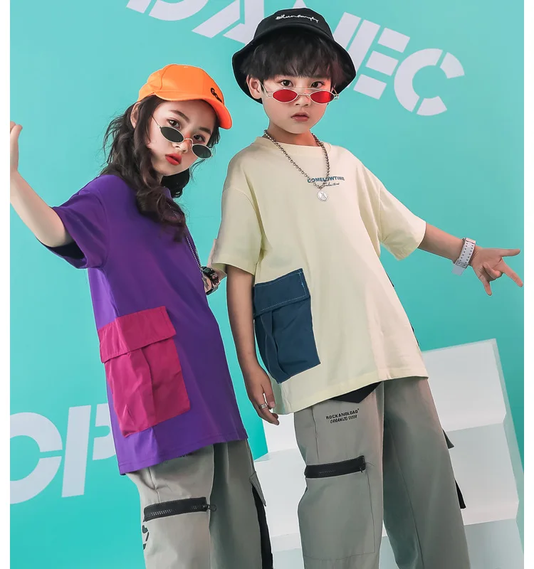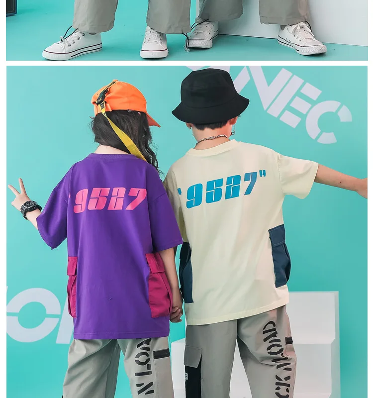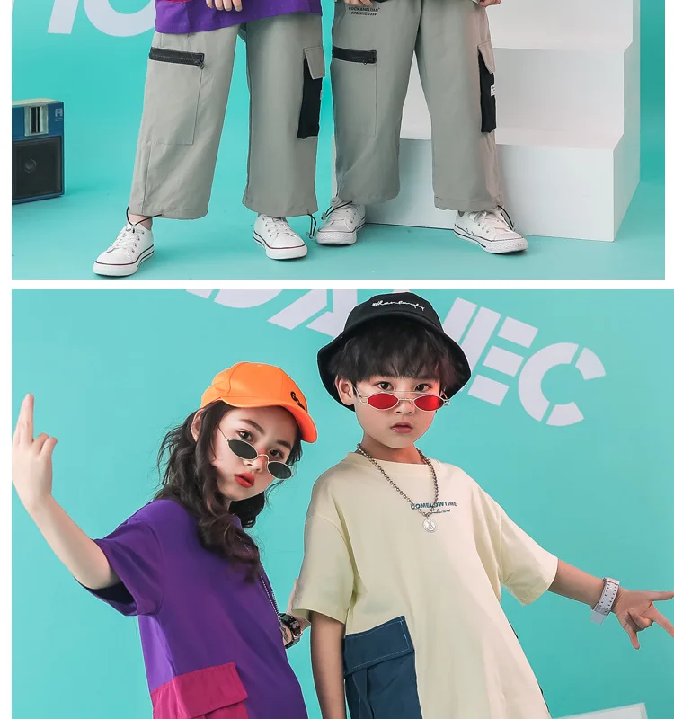 Одежда для бальных танцев, танцевальные костюмы в стиле хип-хоп для девочек и мальчиков, уличная одежда детские танцевальные костюмы для соревнований, джазовая футболка, штаны