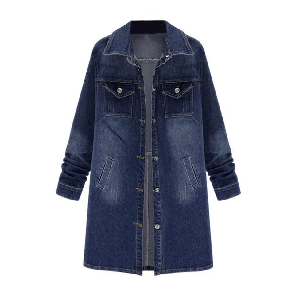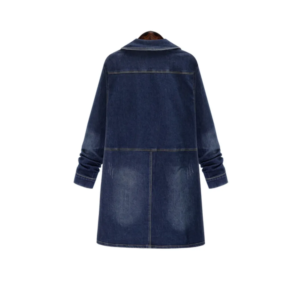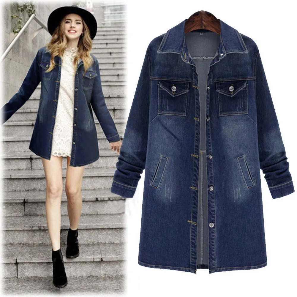 Женская Джинсовая Верхняя одежда, модная верхняя одежда больших размеров с длинными рукавами и карманами