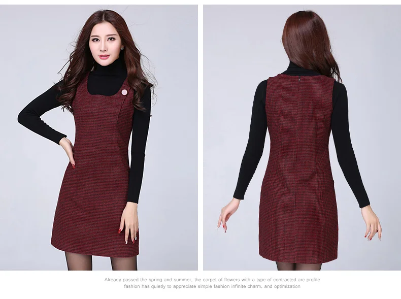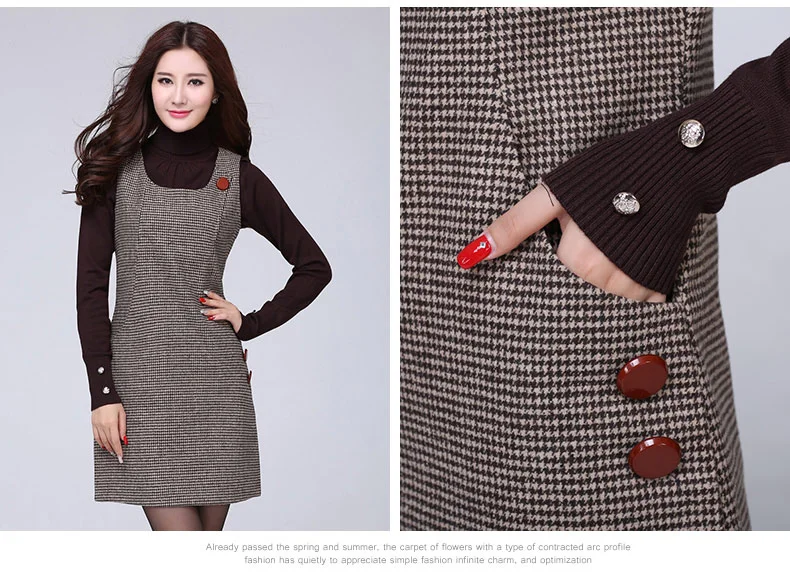 Женское шерстяное платье-жилет в клетку, осенне-зимнее платье с узором «гусиные лапки», большие размеры, RQ217, 2019