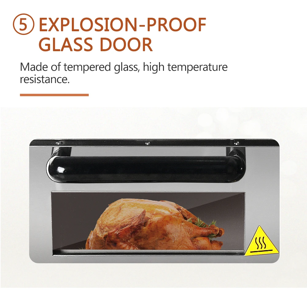 4. С подсветкой внутри, может видеть продукт при работе духовки