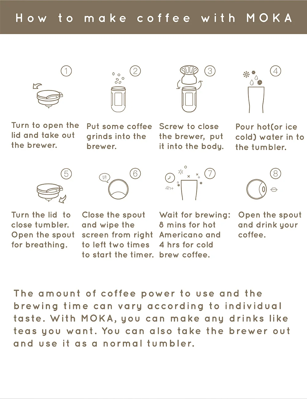 1. Интеллектуальный светильник: oled-дисплей с температурой воды, счетчик времени и мини-игра. 2. Эргономичный дизайн: Просто поверните поворотную крышку и выпейте свой любимый кофе, где вы хотите. 3. Теплоизоляция: она дарит вам тепло зимой и дает прохладу летом. (Выше 42 по Цельсию в течение 6 часов, ниже 10 по Цельсию в течение 5 часов). 4. Изысканный внешний вид: даже женщины с меньшим размером руки могут легко и удобно поднимать руки. 5. С расширяемыми аксессуарами: мелкая сетка пивовара, материал, который делает его очень легко чистить и может быть повторно использован в течение длительного времени.