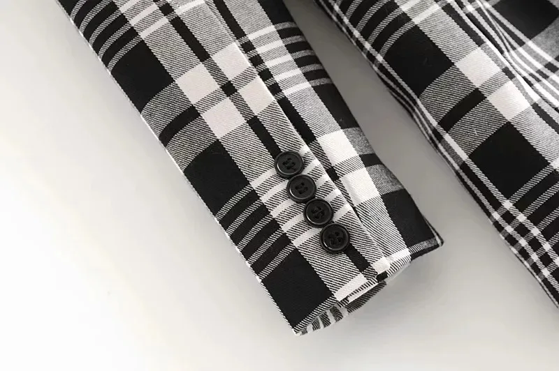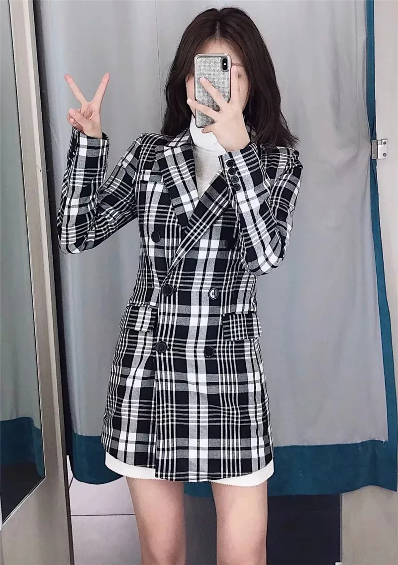 Женский Классический Клетчатый Длинный блейзер Feamle, винтажный черный и белый двубортный пиджак с длинным рукавом на осень, 2019