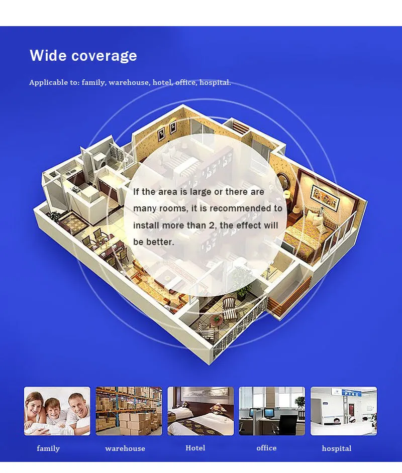 3, продукт должен быть установлен в наиболее серьезном районе вредителя, когда вредители в области устранены, продукт будет установлен в центре всего дома (например, в гостиной) или там, где вредители, скорее всего, войдут.