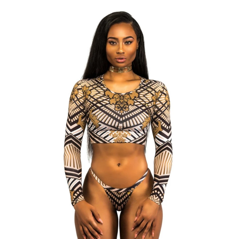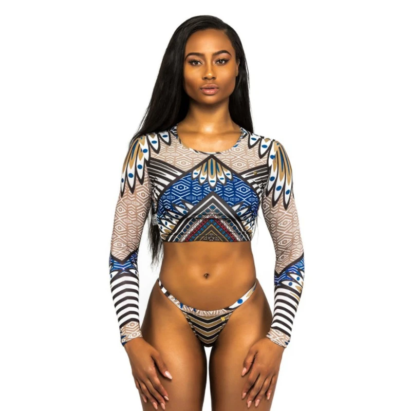 Африканское смесовое эротичное Бикини Бразильский бикини с длинными рукавами