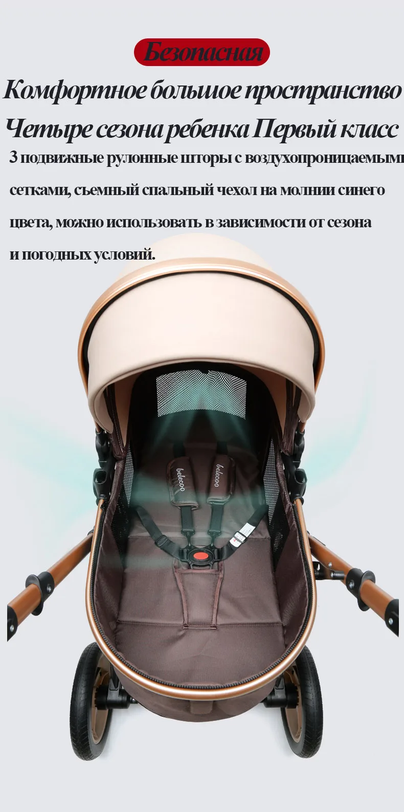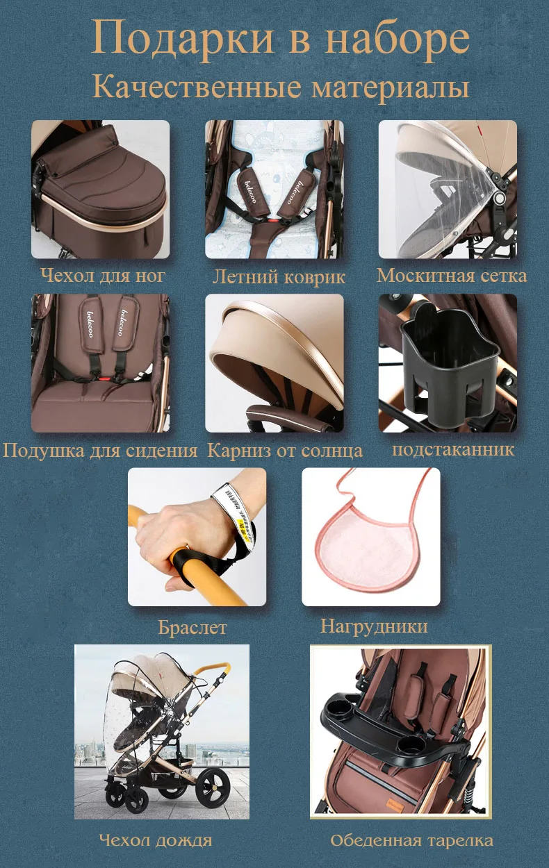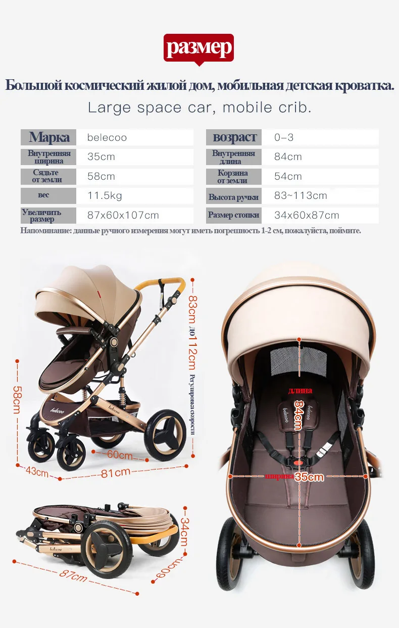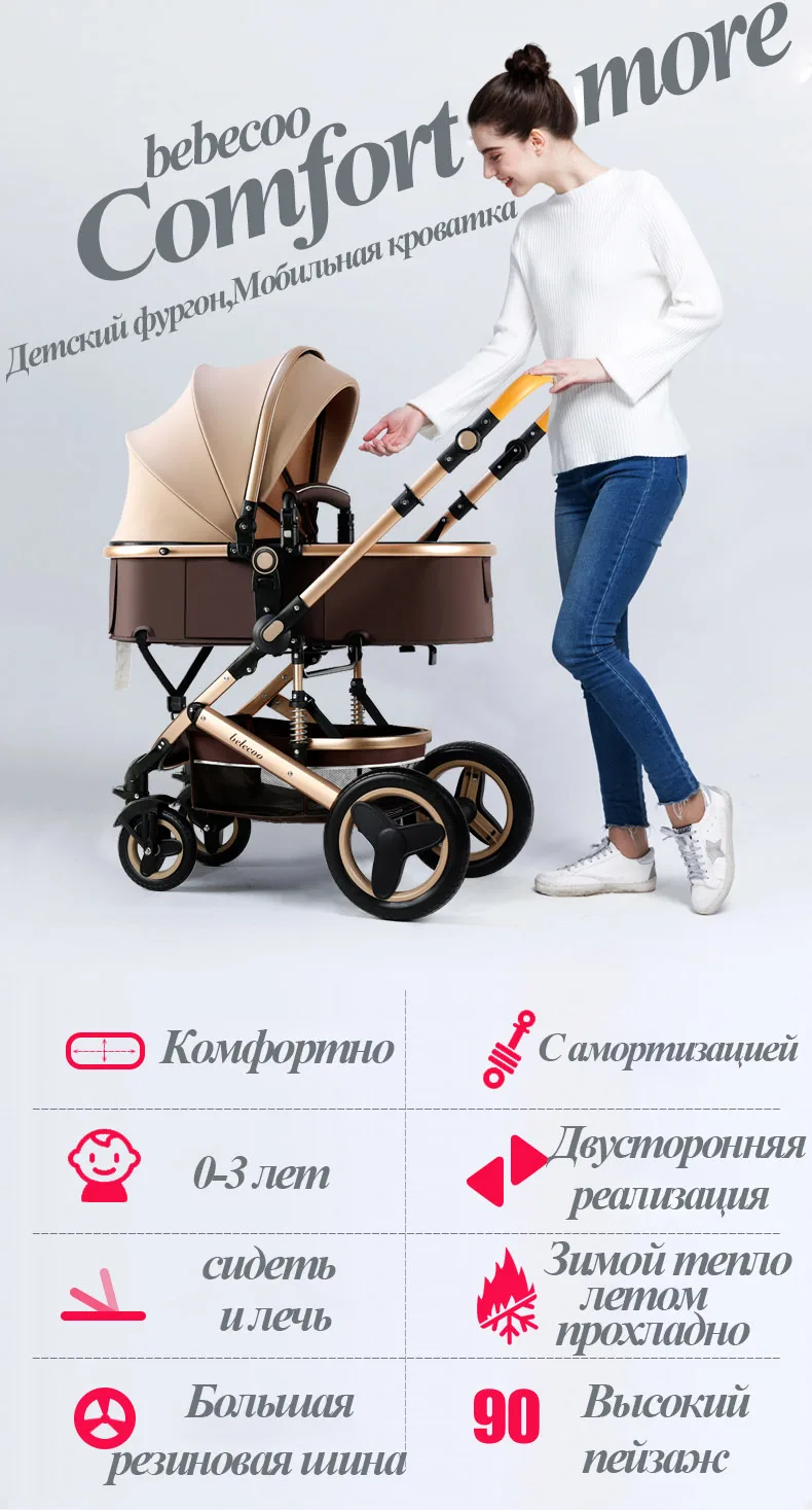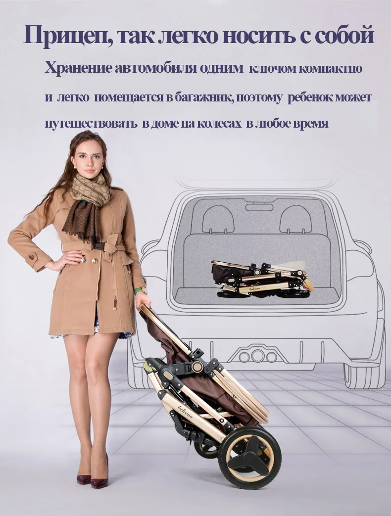 Безопасная детская коляска с автомобильным сиденьем 3 в 1 высоким пейзажем