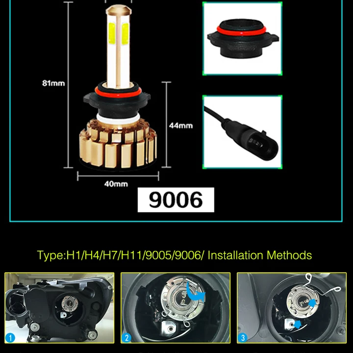 H4 светодиодные автомобильные лампы h7 H11 9005 9006 HB3 HB4 фары лампада осветительный прожектор hi-lo луч 12 в 4 стороны cob led h7 фара 6000k