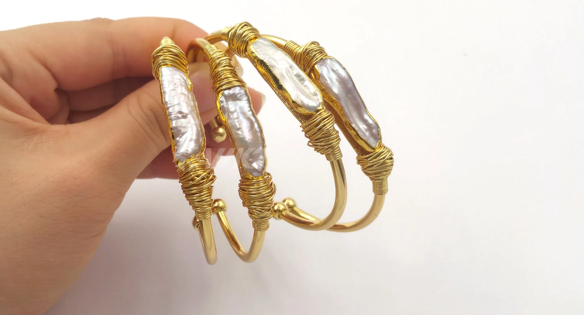 WT-B489 WKT обернутый браслет из натурального жемчуга с золотым ободком, необычный Браслет из жемчуга, женский модный браслет с подвесками, ювелирное изделие