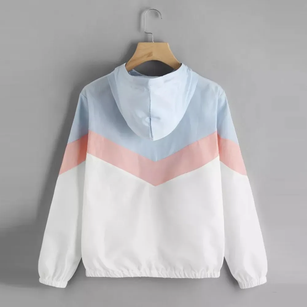Женское с длинным рукавом лоскутное тонкое облегающее пальто с капюшоном на молнии повседневное спортивное пальто