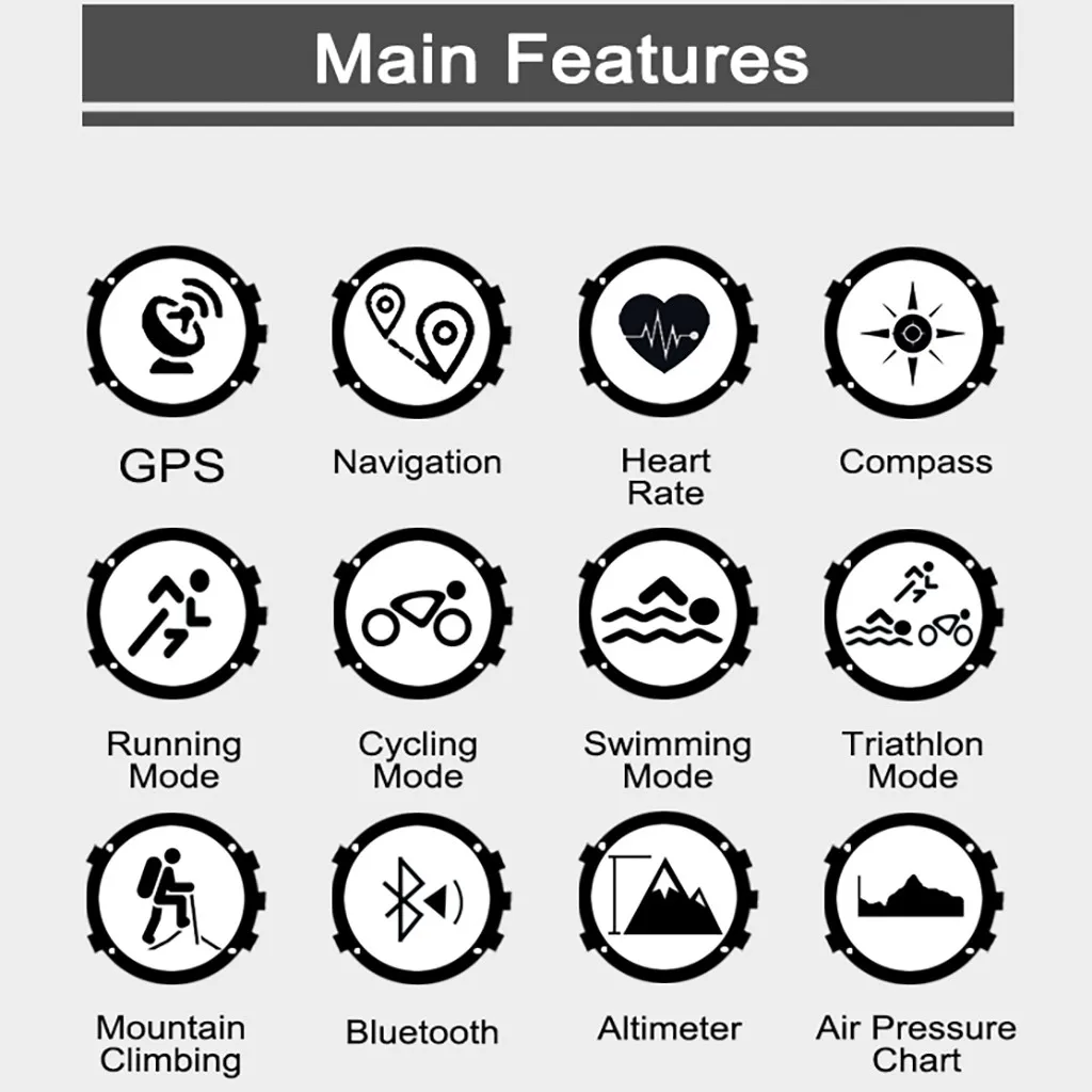 - Высота/барометр/Компас/погружение/шагомер/спиртовой уровень/геолокация