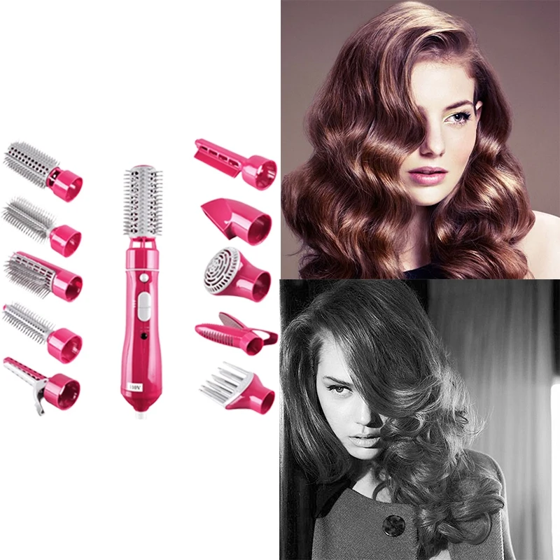 Расческа Щетка для волос 10 в 1 электрические бигуди многофункциональная сушилка щетка с вращающейся стайлер бигуди розовый США вилка