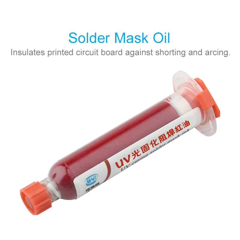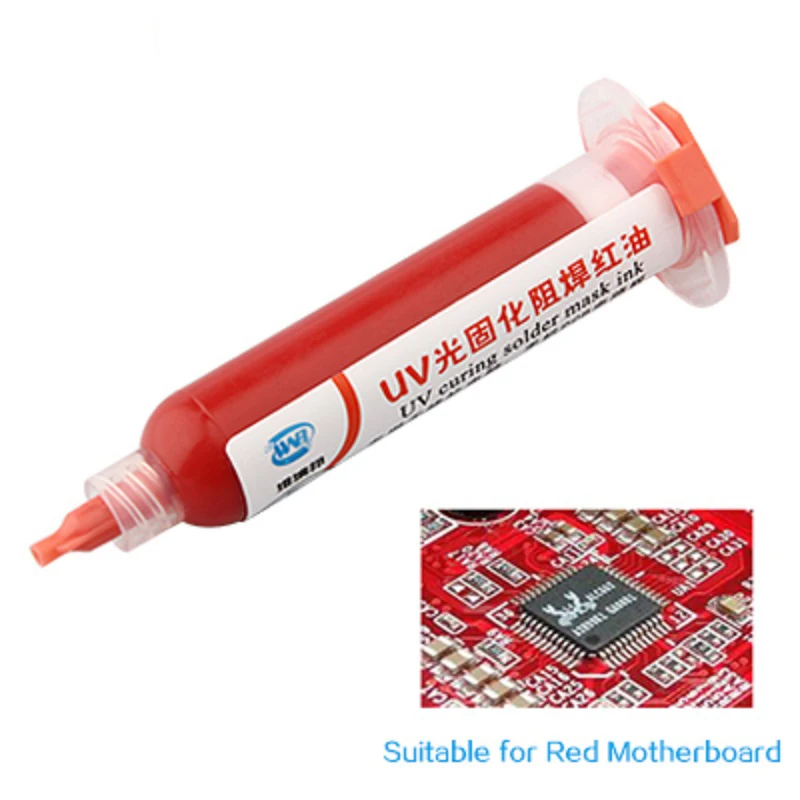 10CC желтый УФ паяльная маска чернила пайка паста Флюс BGA PCB краска предотвращает КОРРОЗИОННОЕ арцирование PCB УФ Фоточувствительный чернила Информация о продукте: Материал: акриловые олигомеров Диэлектрическая сила:> 500 в/мил Устойчивость к растворителям: трихлорэтан варится в течение 2 минут без падения Сопротивление припоя: 255-265 градусов 10 с * 3 раза Твердость:> 5 H Состояние отверждения: УФ-светильник Ёмкость: 10cc Применение: печатная плата ремонт основных материалов Особенности: 1. Желтое масло, жидкое фото припой сопротивляется, является акриловым олигомером. 2. Из-за особой природы материала, масло паяльной маски не высохнет естественным образом. Требуется УФ-отверждение. 3. В качестве защитного слоя, он применяется к цепи и подложке, на которой печатная плата не должна быть спаяна, или используется в качестве припоя сопротивляться. 4. Цель состоит в том, чтобы защитить формируемую линию в течение длительного времени. Промышленное применение: 1. Предотвращает физическое отключение контура проводника. 2. В процессе сварки предотвращает короткое замыкание, вызванное мостом. 3. Сварка только в деталях, которые должны быть сварены, чтобы избежать припоя. 4. Уменьшение загрязнения меди сварочного корыта. 5. Предотвращает порчу и коррозию изоляции из-за внешних факторов окружающей среды, таких как пыль и влага. 6. Он имеет высокую изоляцию и позволяет увеличить плотность цепи.