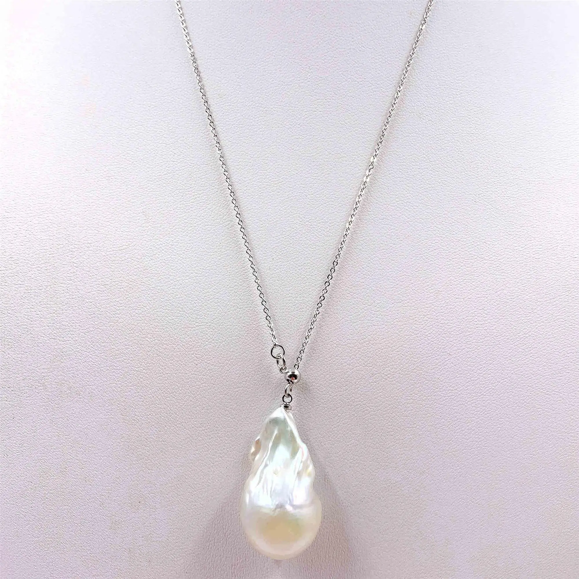 18x32 мм белый жемчуг в стиле барокко Подвеска Серебряное ожерелье 18 дюймов женские ювелирные изделия культивированные настоящие аксессуары безупречные