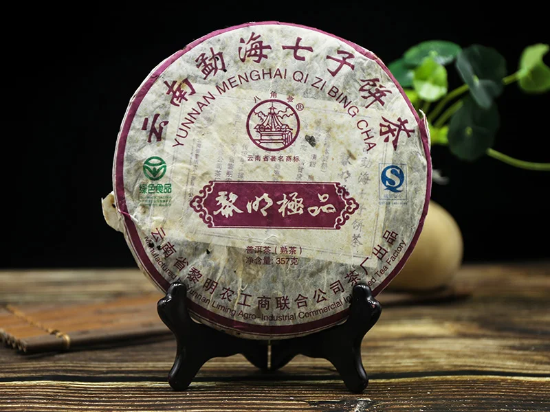Название продукта:Bajiaoting 2009 Menghai Shou Pu-erh Liming "Ji Pin" супер Состаренный спелый чай из ПУ-эрх Chi Tse Beeng 357 г