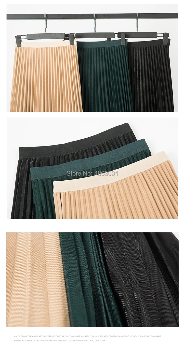 Модная женская однотонная плиссированная юбка с высокой талией, эластичная юбка, женские вечерние юбки цвета хаки, черного, темно-зеленого цвета