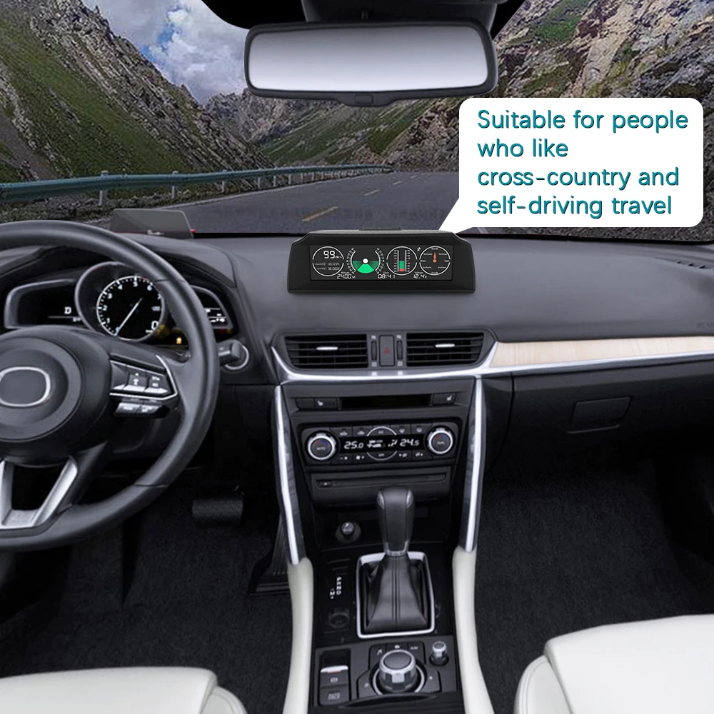 Информация о продукте: Умный GPS многофункциональный горизонтальный спидометр для вождения, полностью поддерживает Высокоточный Мониторинг скорости автомобиля, угла наклона транспортного средства, изменения угла наклона транспортного средства, компас, высота, широта и долгота, время и состояние напряжения автомобильного аккумулятора, чтобы сопровождать безопасность вождения.