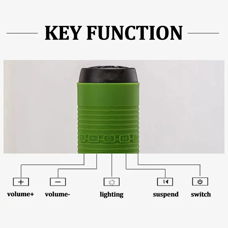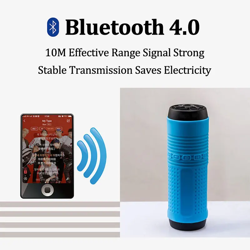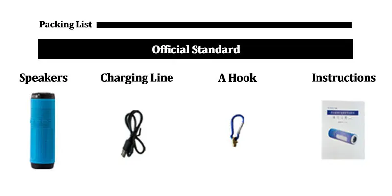 Поддержка функции: Bluetooth/tf-карта/USB/AUX/fm-радио/голосовой вызов Версия Bluetooth: 4,0 Расстояние передачи: 10 м Питание: встроенная батарея Емкость аккумулятора: 4000 мАч Частотный диапазон отклика: 60 Гц-15 кГц SNR: ≥ 75 дБ Рог: 4Ω 3 Вт Материал: АБС-пластик/силикон Время работы: около 30 ч Размер изделия: 156*51*51 мм Вес: 240 г Цвет: красный/синий/серый/зеленый Официальные стандарты: аудио кабель, USB кабель для зарядки