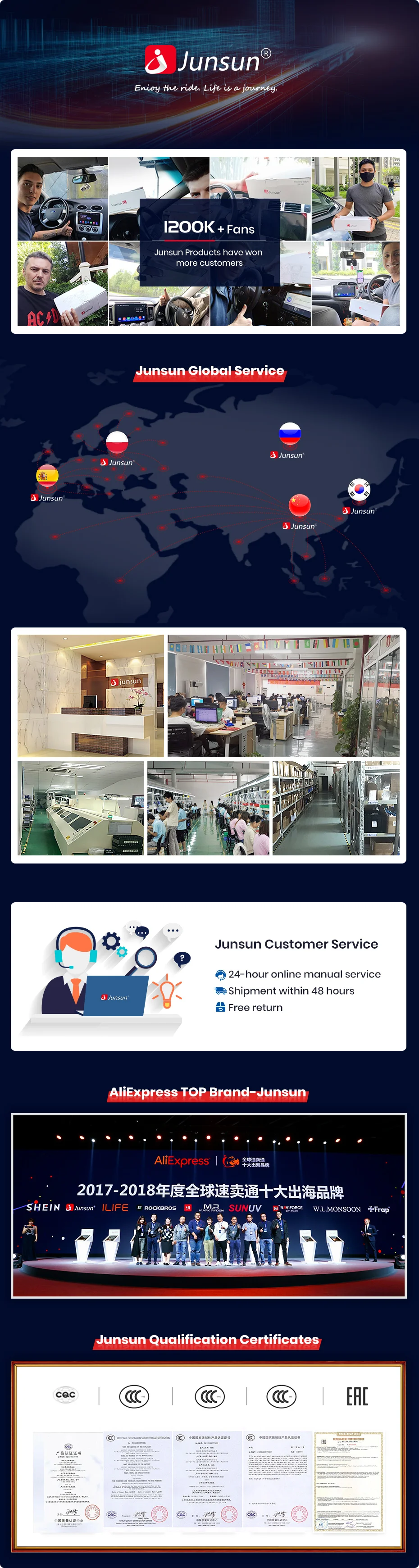 > Почему выбрать Junsun? 1. AliExpress 10 лучших брендов, стоит довериться; Официальный магазин Junsun имеет 1000K + поклонников, популярных среди клиентов. 2. Все продукты прошли строгий контроль качества перед отправкой, убедитесь в высоком качестве. 3. После проверки оплаты будет отправлен в течение 48 ч с китайского склада, и 24 ч корабль с местного склада, ES, EU, RU, PL доставка склада. (рабочий день времени) 4. Если продукт имеет проблему в течение 365 дней после подтверждения получения, мы заменим новую машину непосредственно для вас, но, пожалуйста, свяжитесь с нами, чтобы решить проблему после продажи. Эта гарантия не распространяется на ущерб, причиненный в результате аварии, неправильного использования, или модификации продукта.
