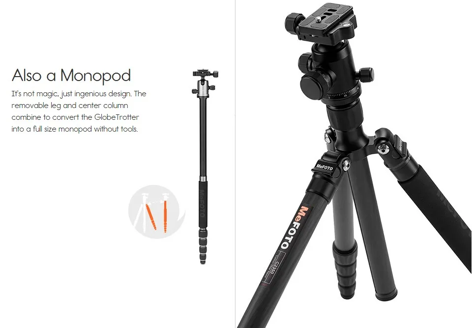 | Центральная колонна | Да. Прикрепляется к секции ноги для преобразования в монопод полного размера. | Да. Прикрепляется к секции ноги для преобразования в монопод полного размера. |