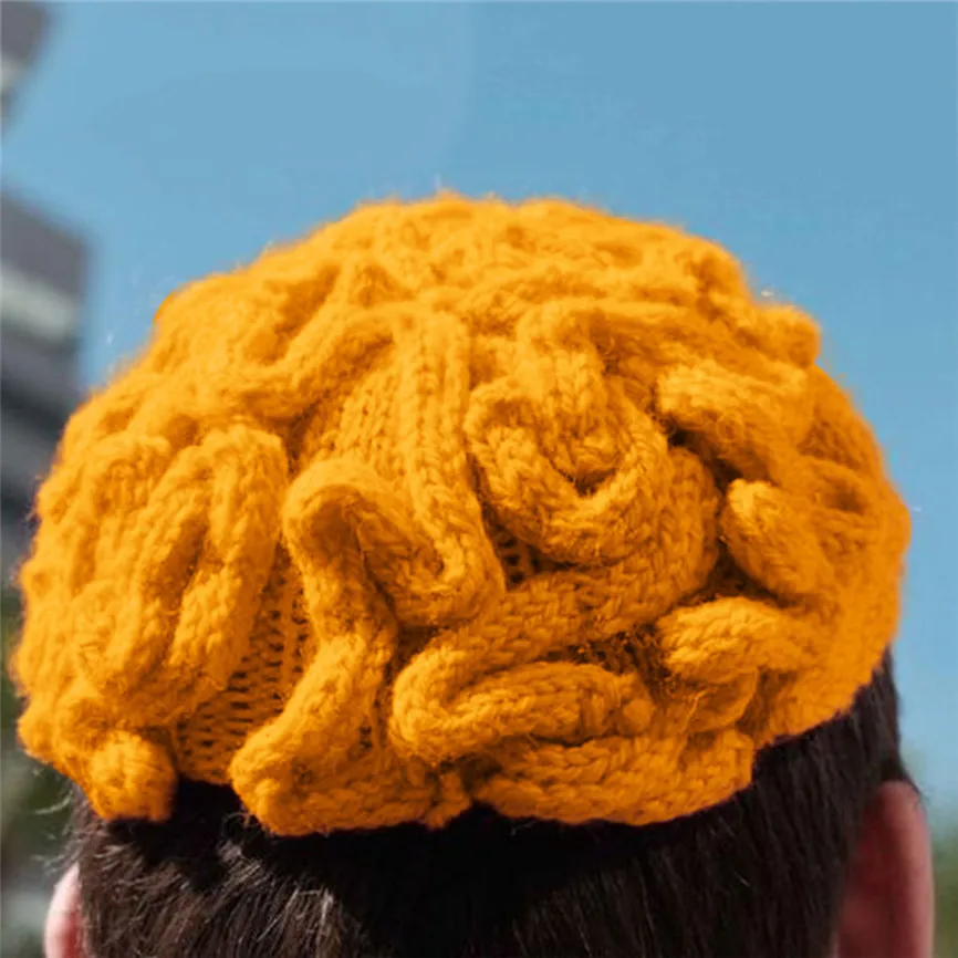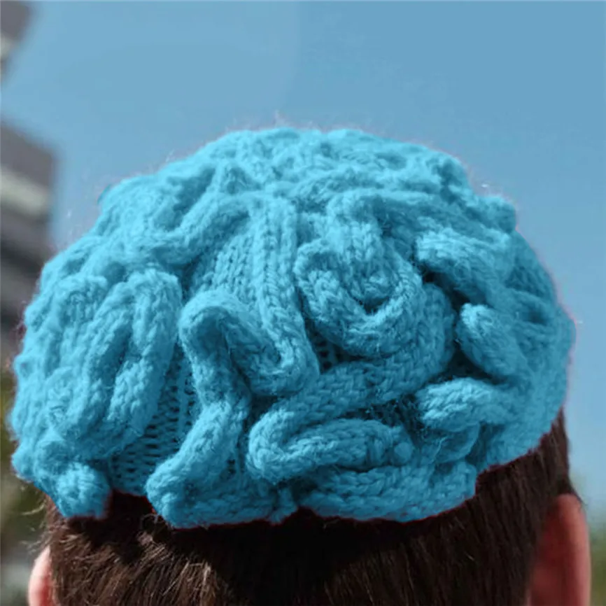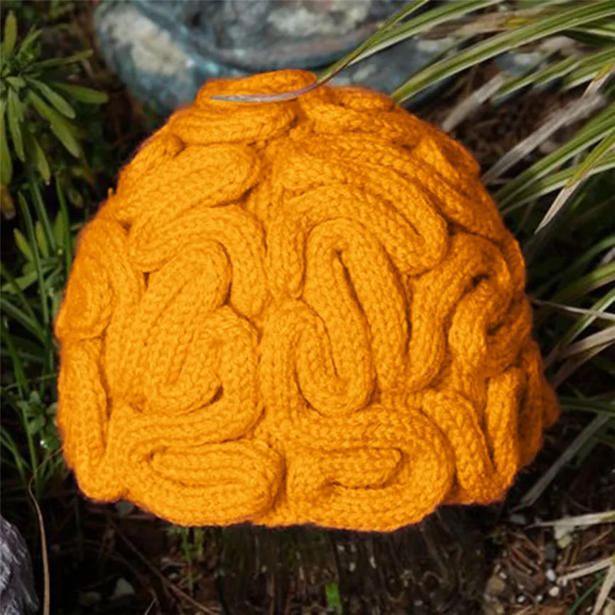 Забавный ручной страшно мозг вязать Кепки Для мужчин's и Для женщин Хэллоуин шапочка ручной работы вязаная шапка бини, зимние теплые шапки