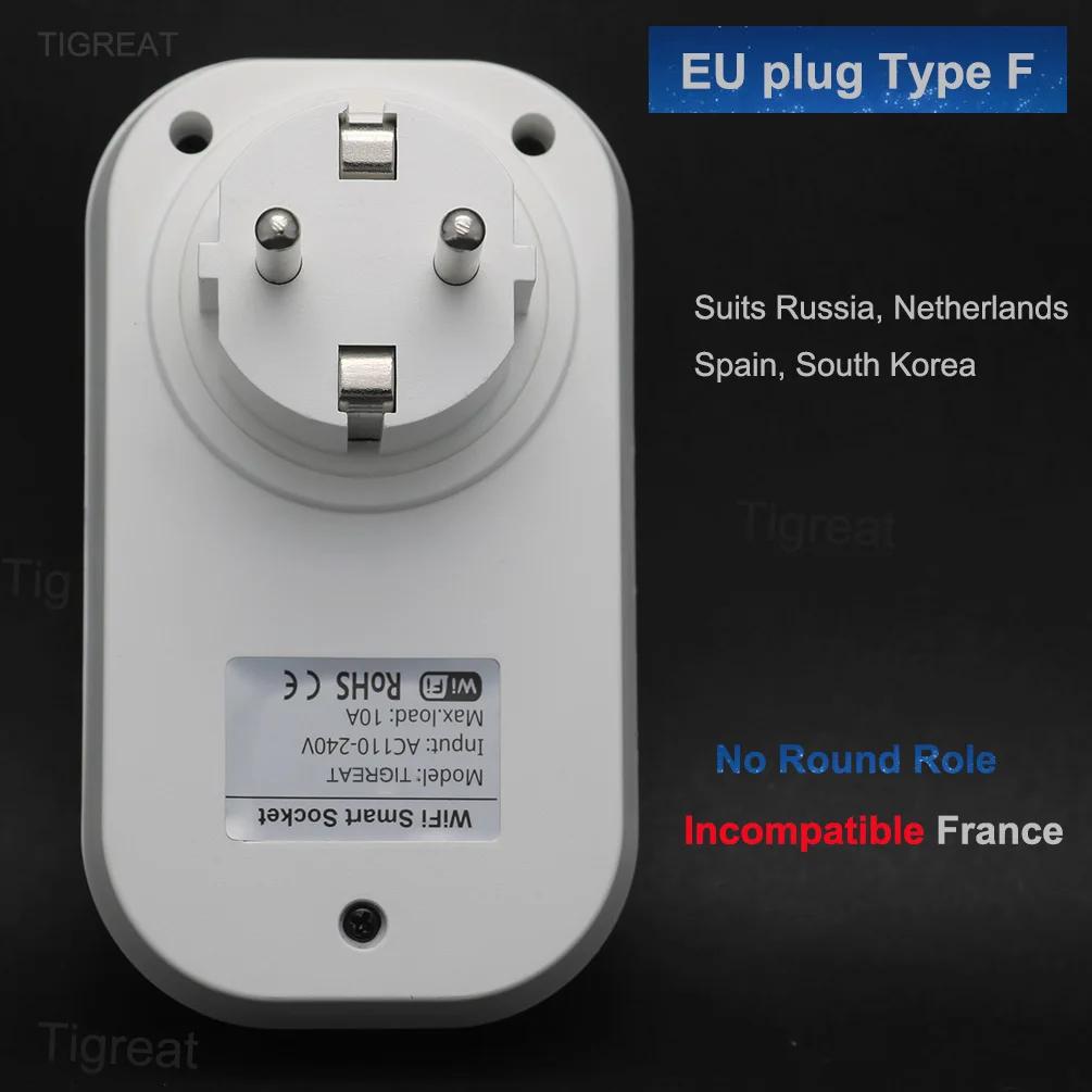 Эта ШТЕПСЕЛЬНАЯ Розетка wifi типа F не имеет круглого отверстия. Может использоваться в Испании, Южной Корее, России и так далее.