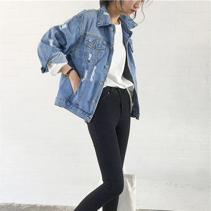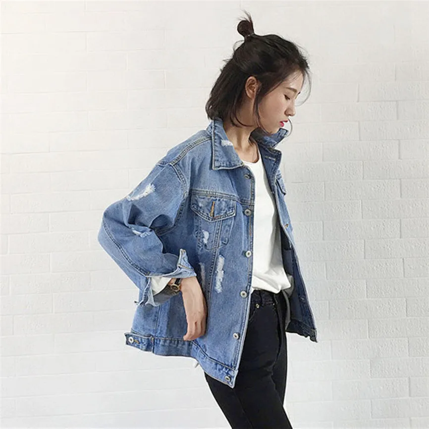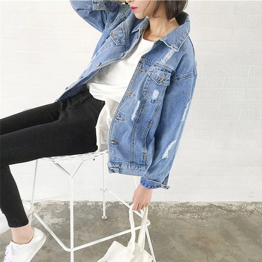 Женские осень-зима джинсовая куртка в винтажном стиле, с длинным рукавом Свободные джинсы пальто куртки и пиджаки