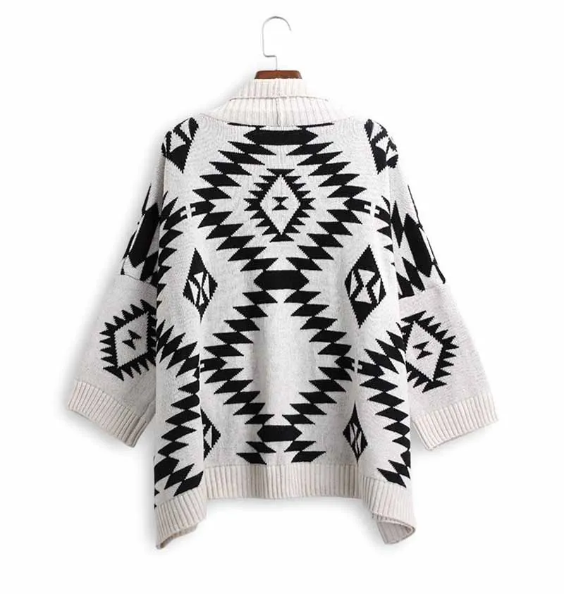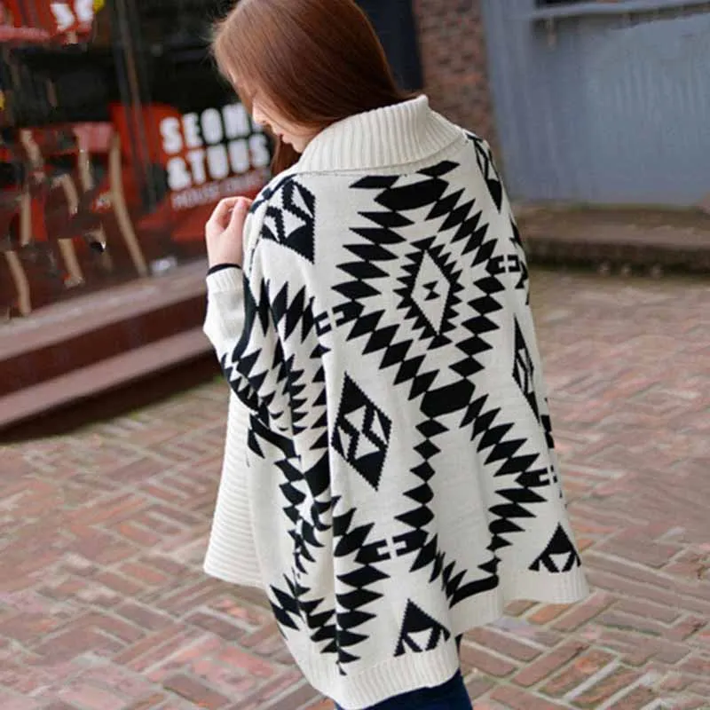 Женский свитер, кардиган, шаль, ромбовидный дизайн, накидка, пончо, рукав летучая мышь, длинный рукав, Вязаный плащ, повседневное свободное осенне-зимнее пальто