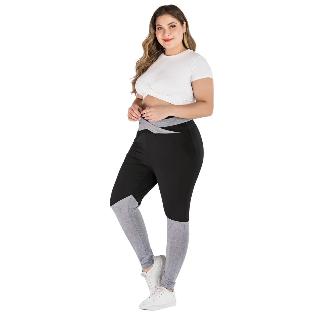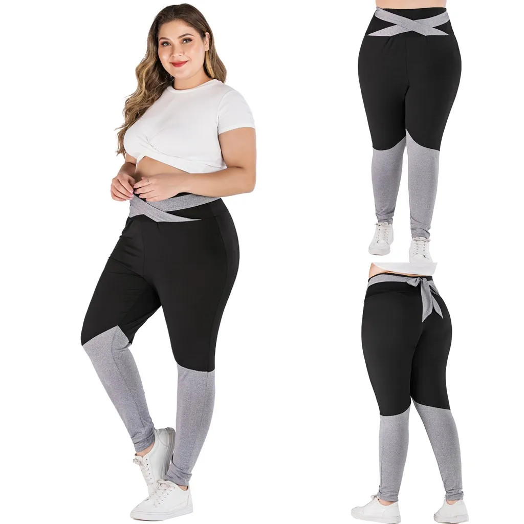 Женские повседневные спортивные брюки контрастных цветов с перекрестными ремешками и бантом, размера плюс