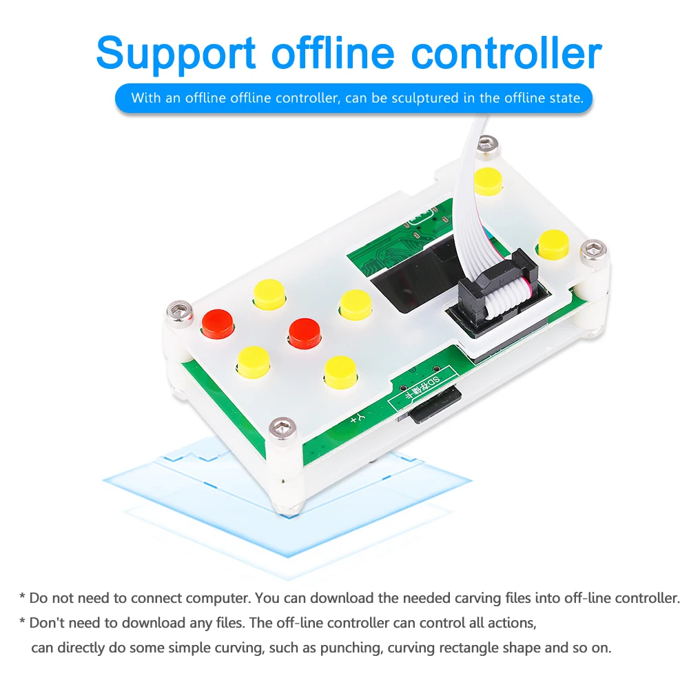 Особенности: Это Модернизированная версия CNC 1610, по сравнению со старой моделью, с автономным регулятором, может быть скульптурой в автономном режиме. Это может быть двумя основными преимуществами автономного контроллера: Не нужно подключать компьютер. Вы можете загружать необходимые файлы для резьбы в автономный контроллер. Не нужно загружать любые файлы. Автономный контроллер может контролировать все действия, может напрямую выполнять некоторые простые кривые, такие как Пробивка, изогнутая Прямоугольная форма и так далее. Этот гравировальный станок с ЧПУ для самостоятельной сборки специально разработан для развлечения, учебы и исследований с помощью профессионального программного обеспечения контроля GRBL, что обеспечивает вам очень портативный опыт. Цельнометаллический корпус, изготовленный из алюминия и с обработкой красным окислением, является прочным и привлекательным. Если вы опытный энтузиаст гравировки с ЧПУ, который хочет модернизировать, вы можете добавить комплект лазерного модуля к машине. С помощью этого модуля, он может предоставить вам различные способы, чтобы развязать ваше творчество.