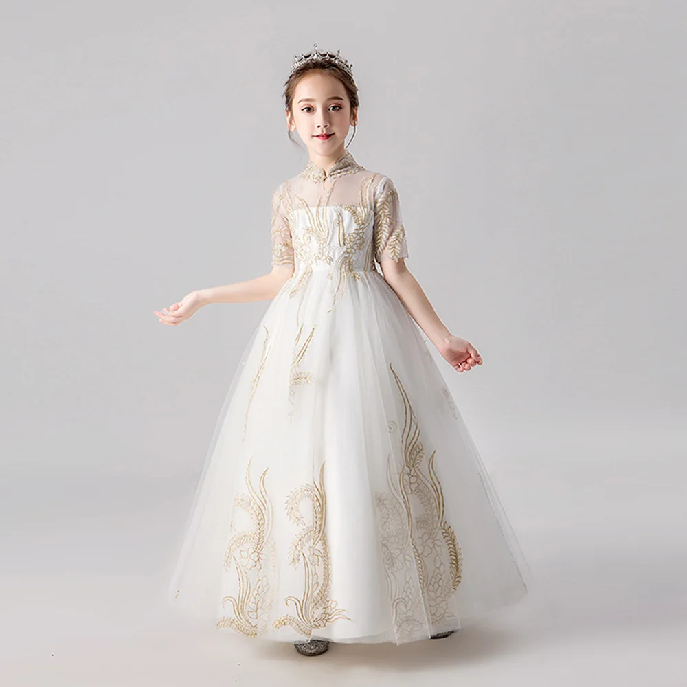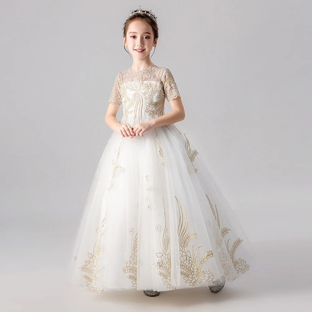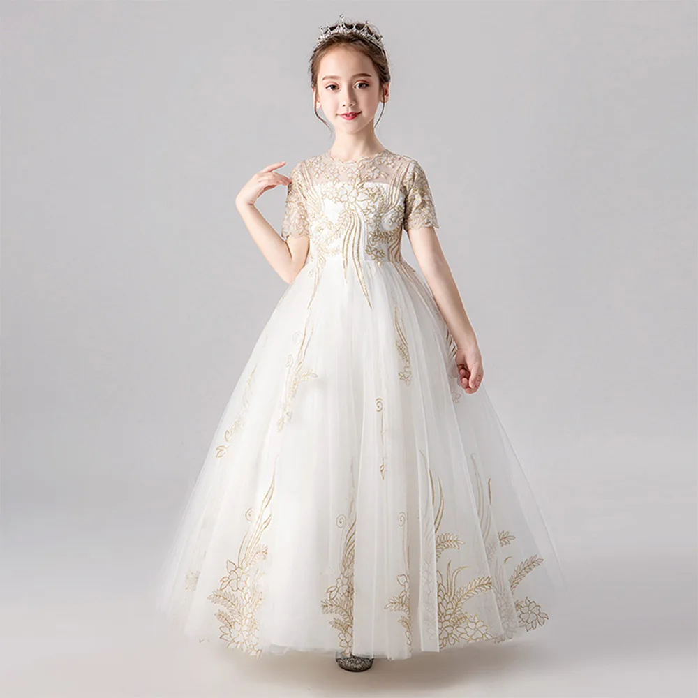 HS Kellio/платье с цветочным узором для девочек; Цвет слоновой кости; Вечерние платья принцессы с короткими рукавами для маленьких девочек; Кружевные аппликации
